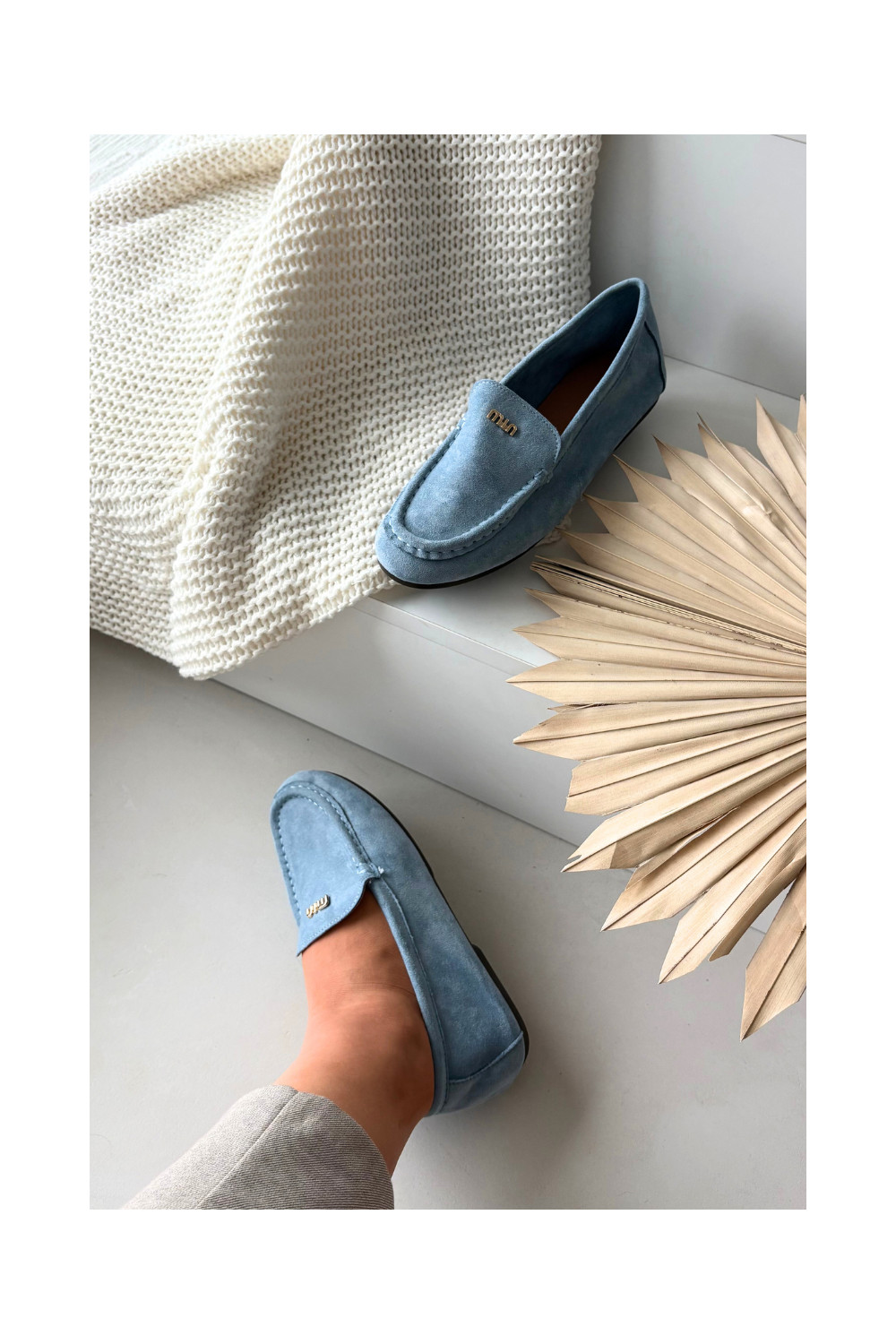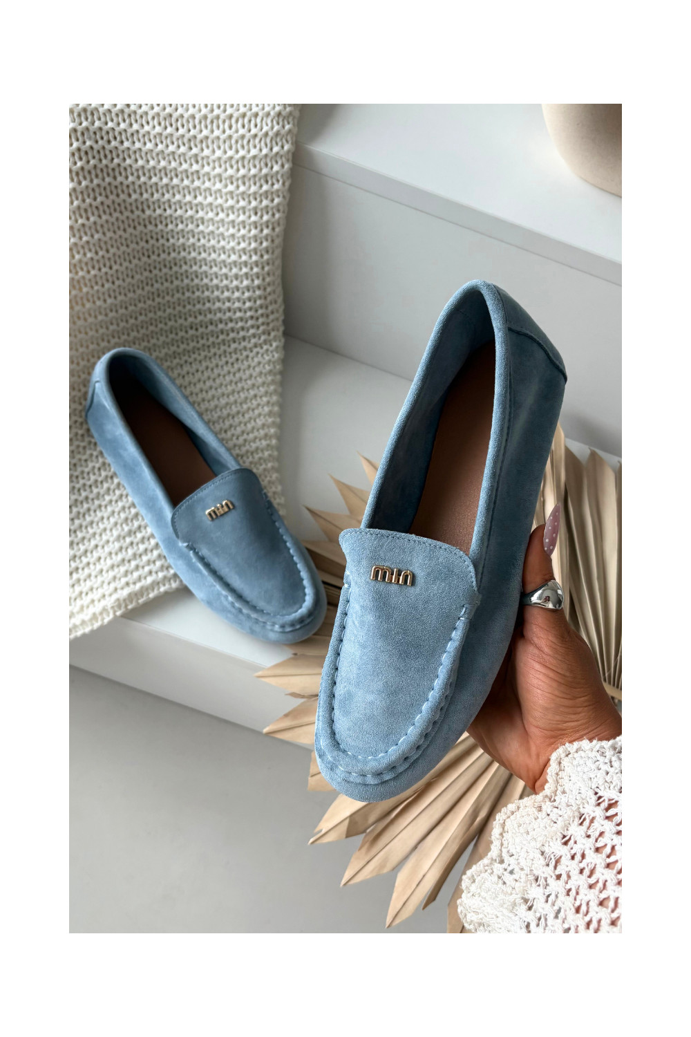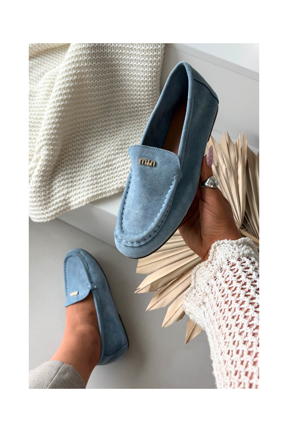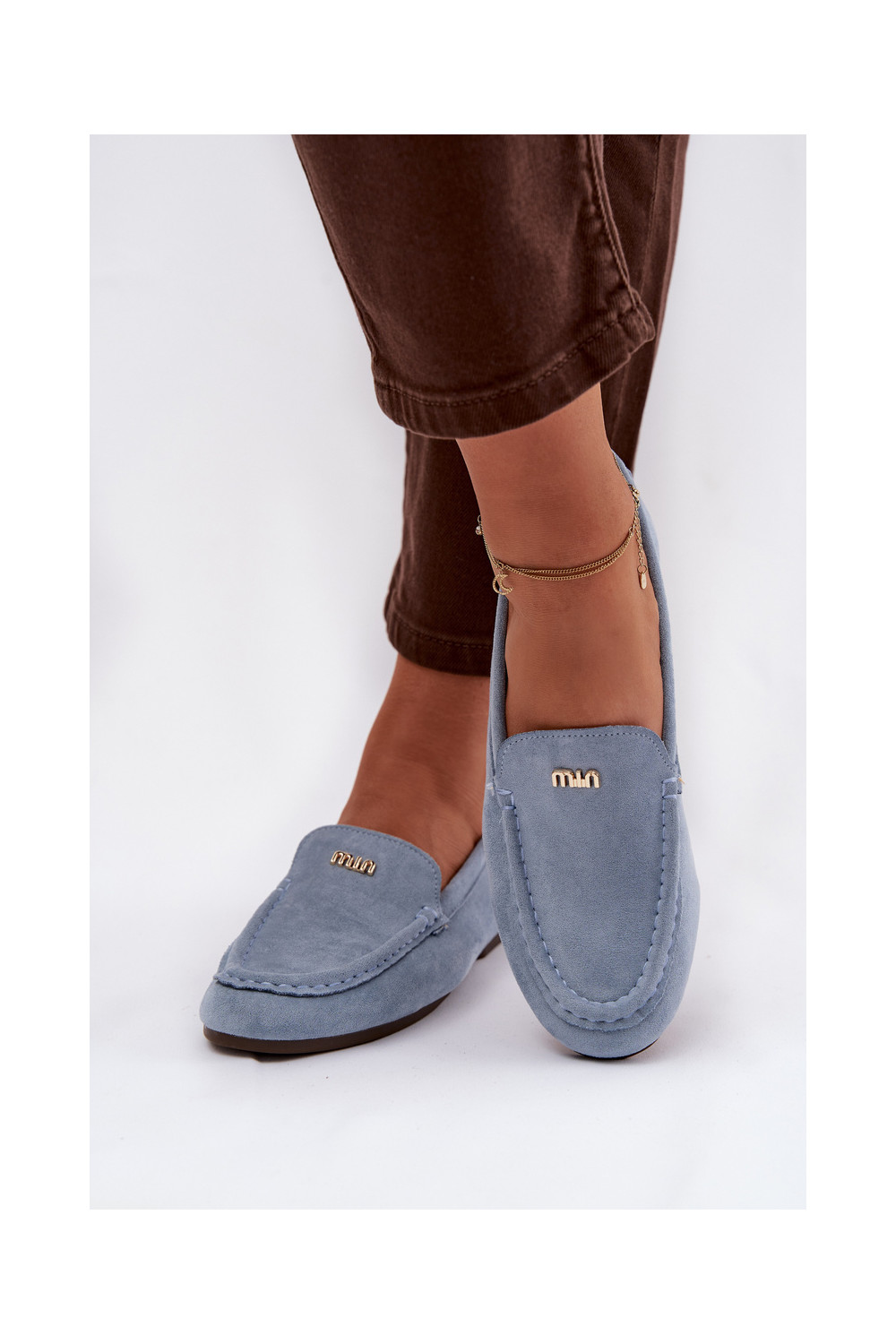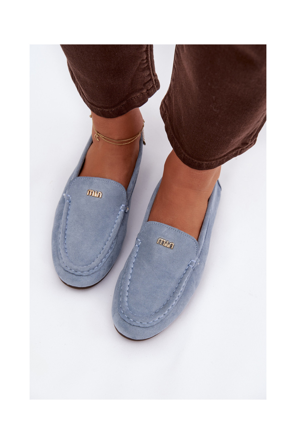 Sieviešu mokasīni ar zelta krāsas detaļām zilā krāsā Sarivelle