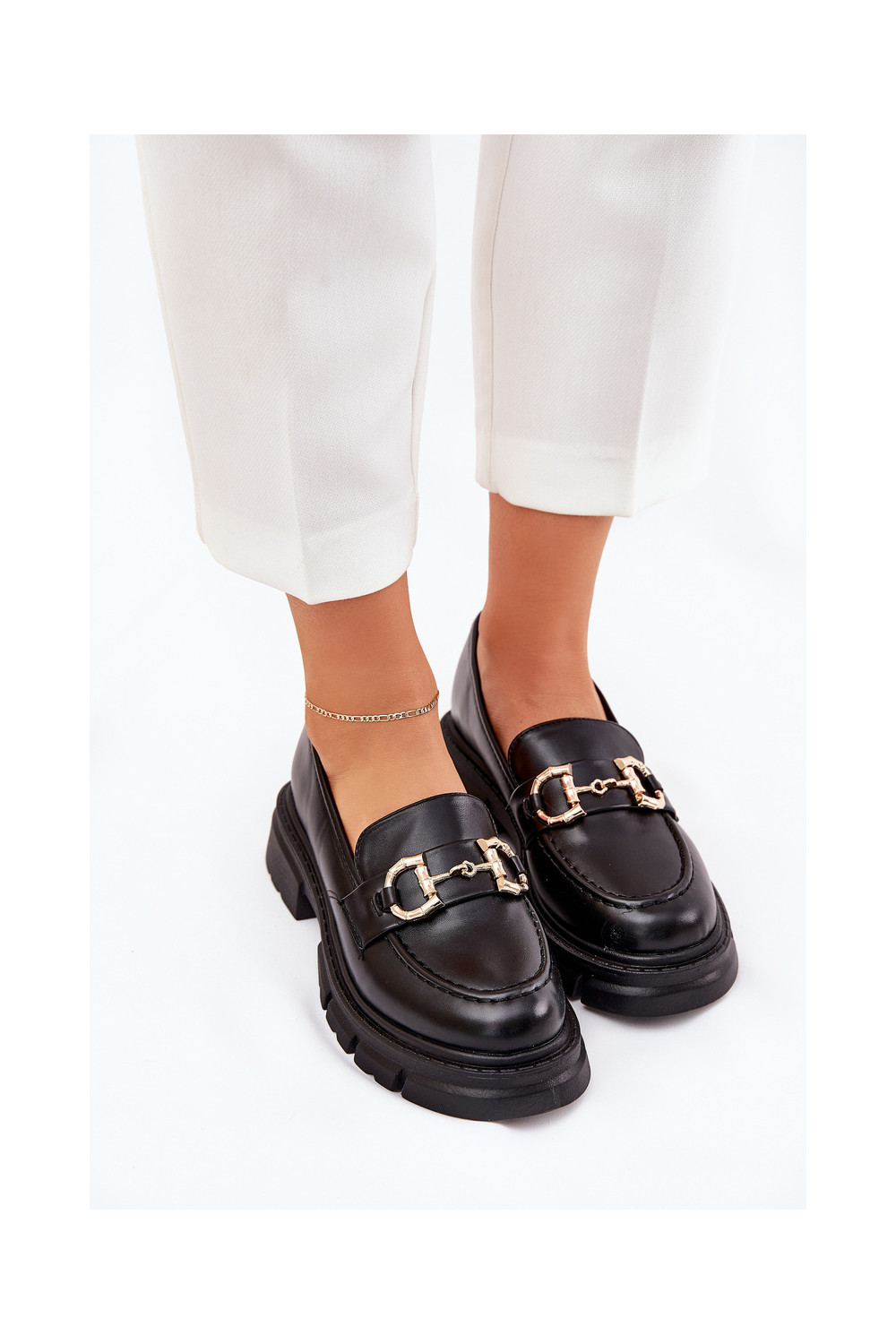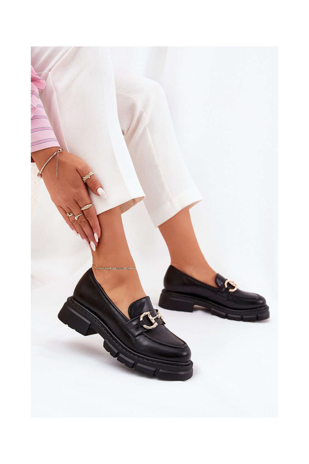 sieviešu mokasīni Eko Āda Ze Zelta krāsasm Detalem melnas krāsas Ravalissea