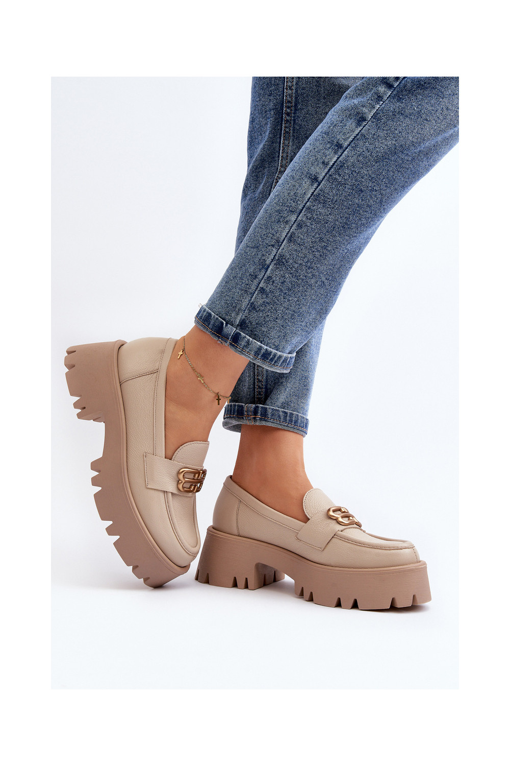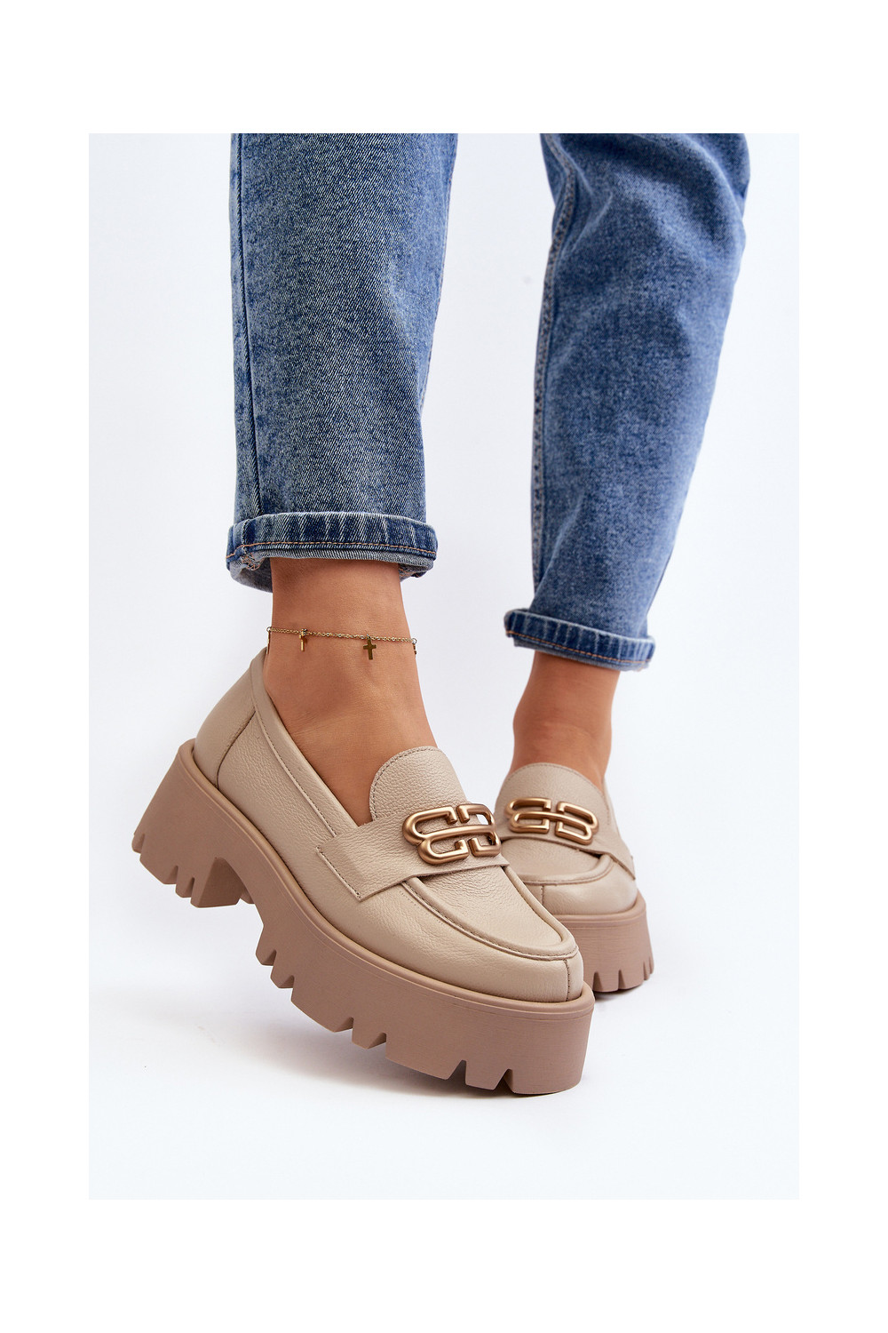 Zazoo 20164 sieviešu mokasīni no dabīgās ādas smilšu krāsā