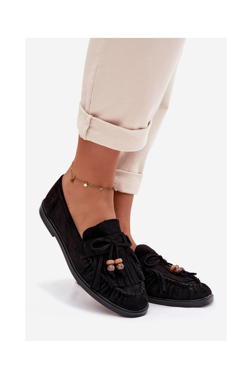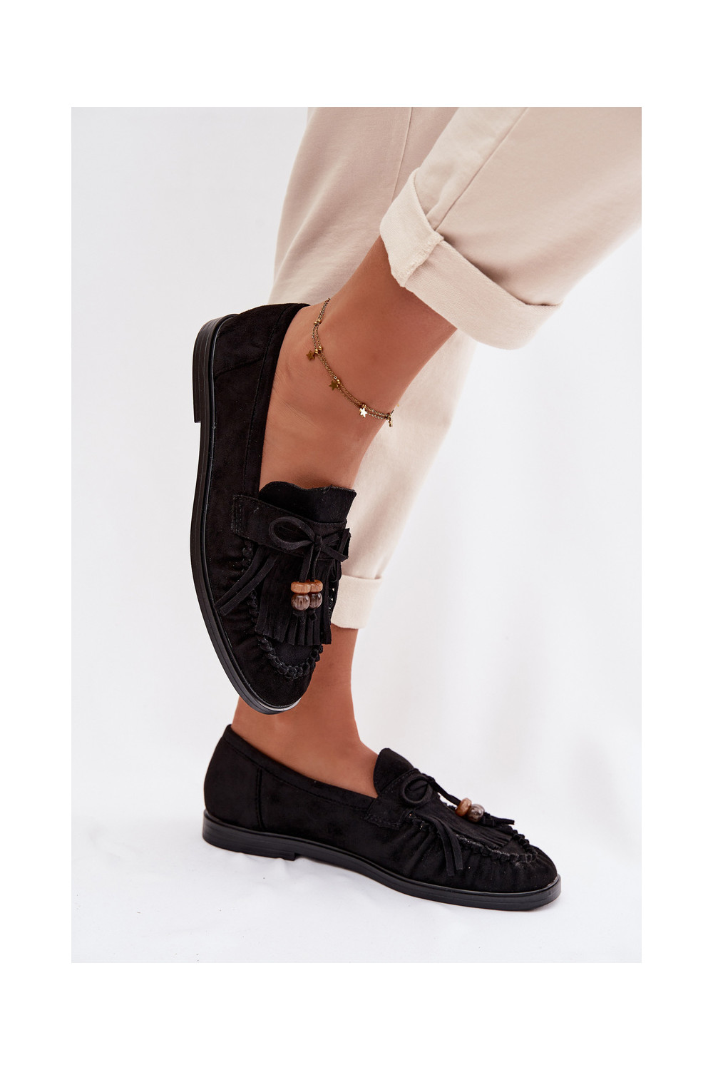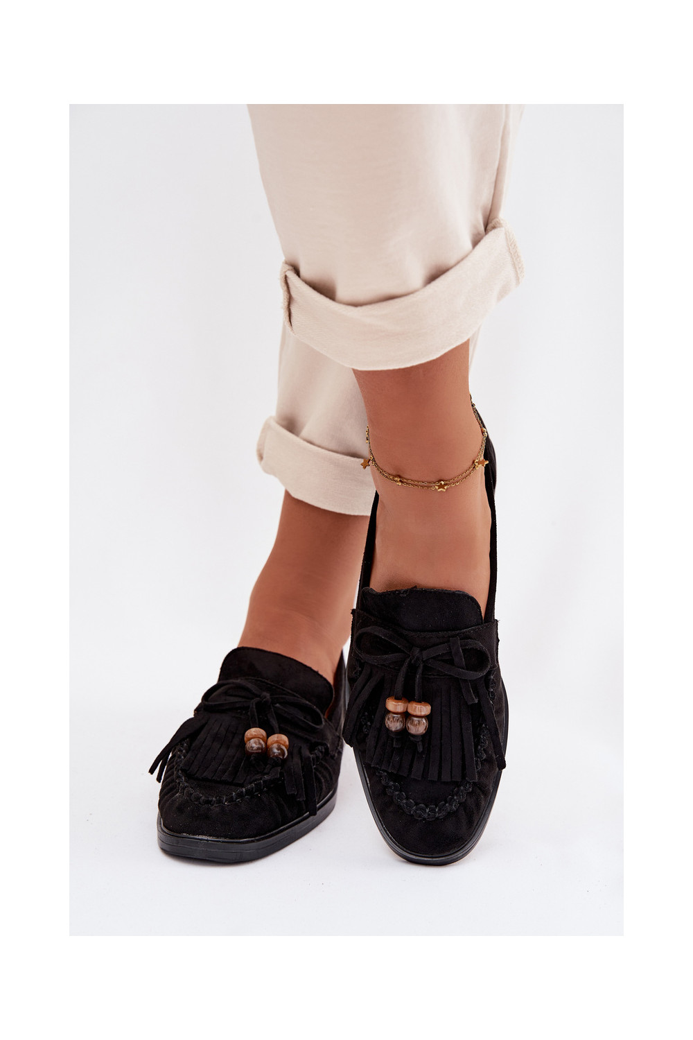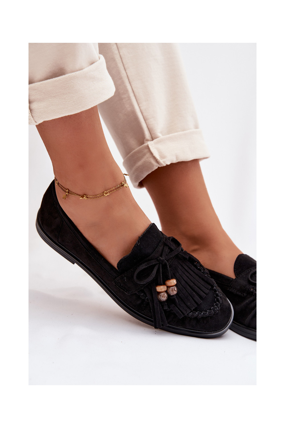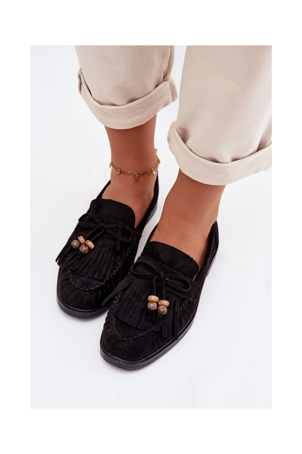 Sieviešu mokasīni ar bārkstīm, korallmelnā krāsā, Teressa