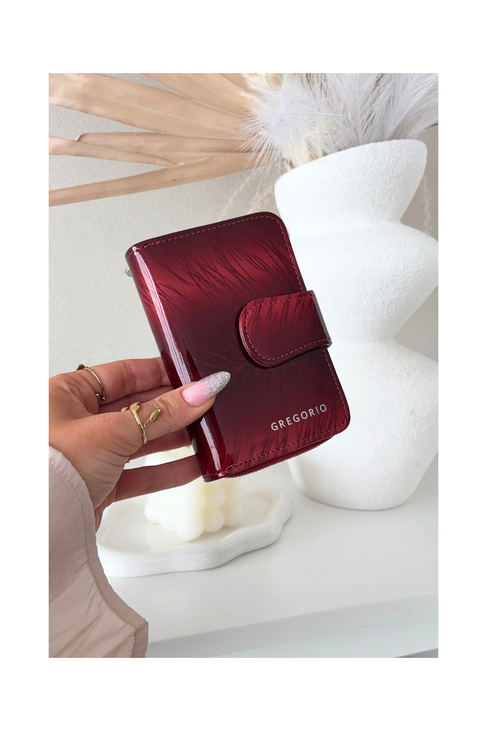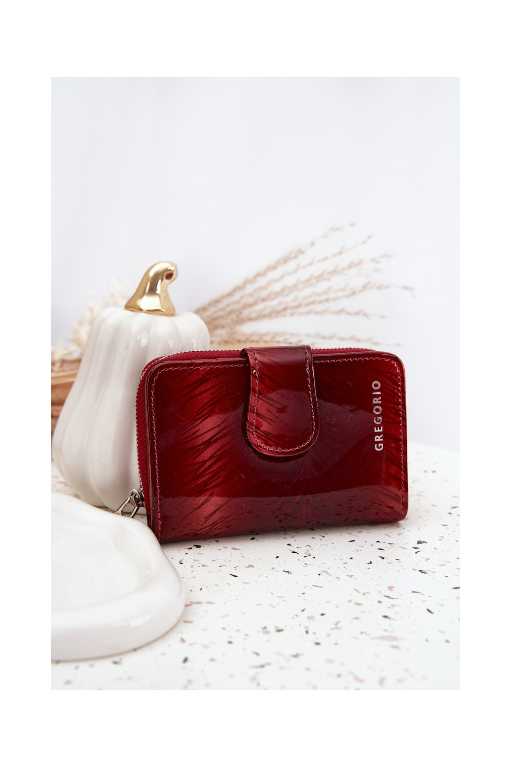 Lakuota sieviešu maku ar dzirkstelēm sarkanā krāsā Luretta
