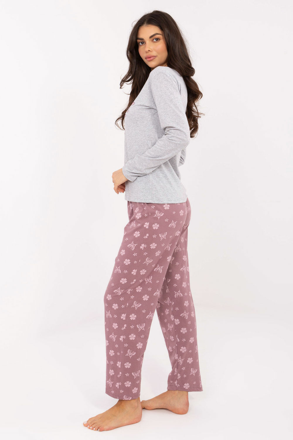 Women's pajamas are a charming, two-piece set that combines comfort with delicate, feminine style. The long-sleeved blūze with a round neckline has been adorned with an elegant butterfly with a caption on the front, creating a subtle and decorative accent. The long pants have an elastic band sewn into the waist, which ensures a great fit to the silhouette and provides full freedom of movement. The material of the pants is decorated with a print of butterflies and flowers, adding lightness and a romantic character to the pajamas. Simple, long legs guarantee comfort and convenience during sleep and home relaxation. This is an excellent choice for women who appreciate soft materials, comfortable cut, and subtle, feminine design.