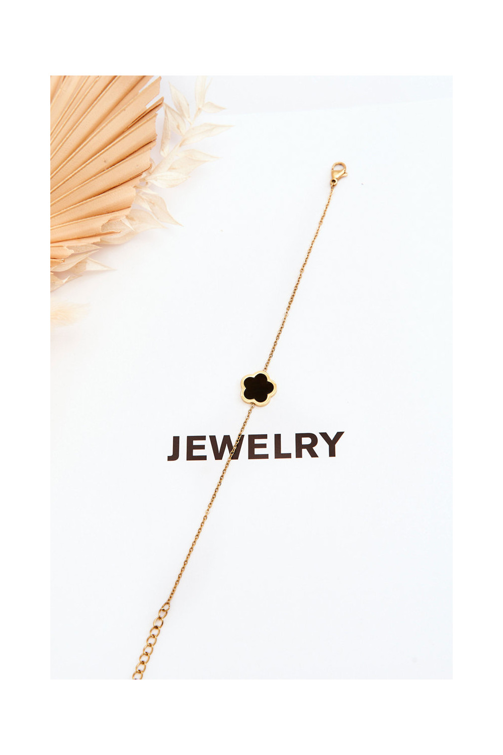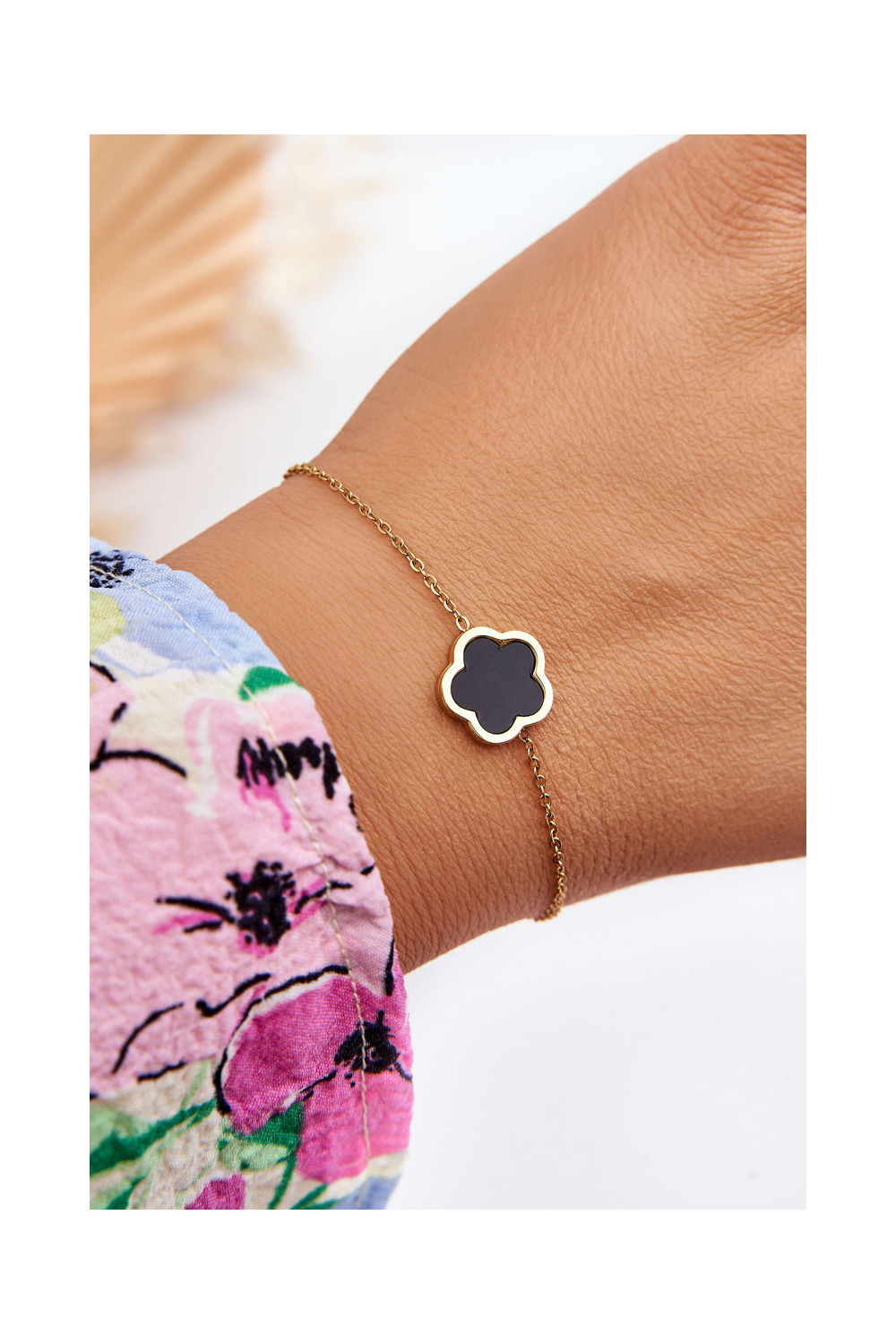 Sieviešu rokassprādze ar melnu ziedu zelta krāsā