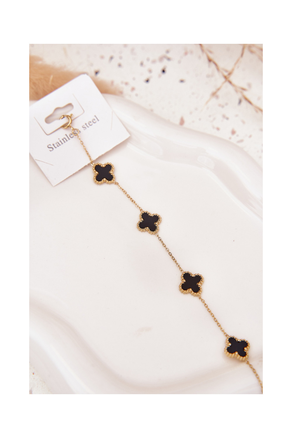 Aproces ar piekariņiem no nerūsējošā tērauda, zelta-melna
