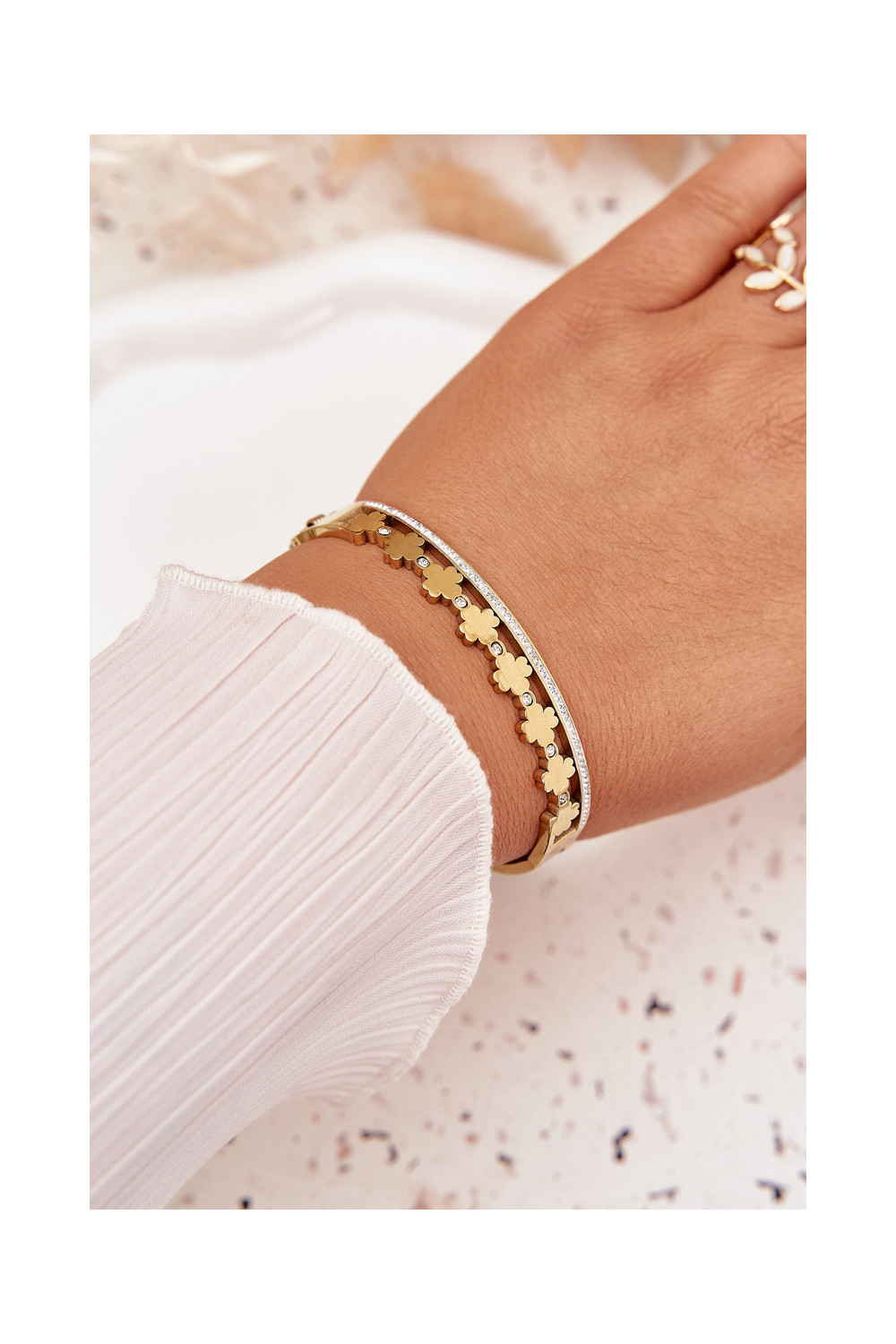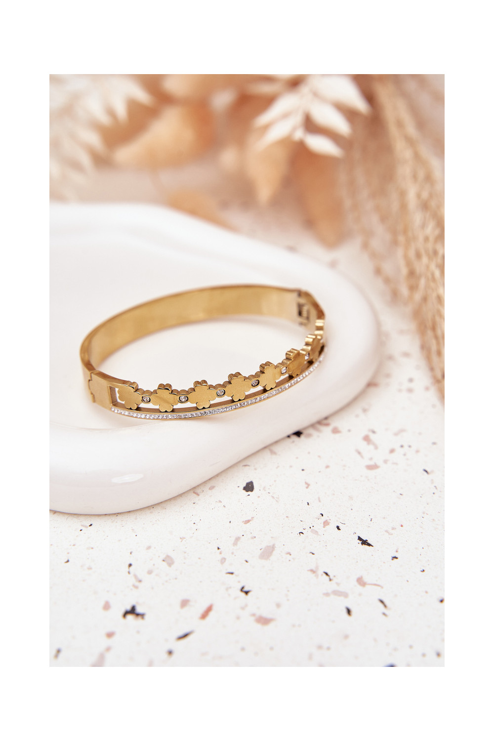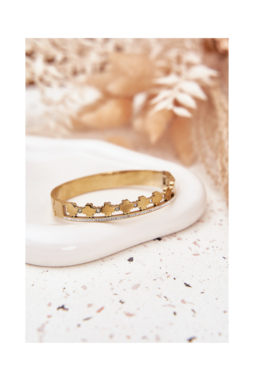 Nerūsējošā tērauda zelta krāsas aproce ar cirkoniem