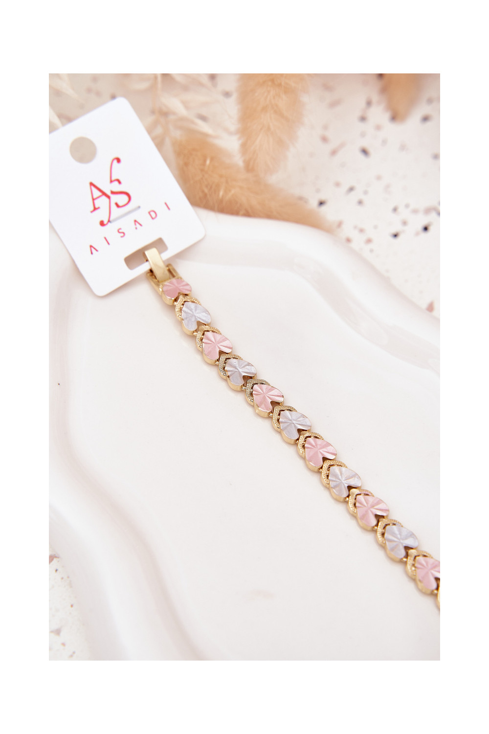 Sieviešu ķirurģiskā tērauda zelta krāsas aproce ar krāsainām sirdīm