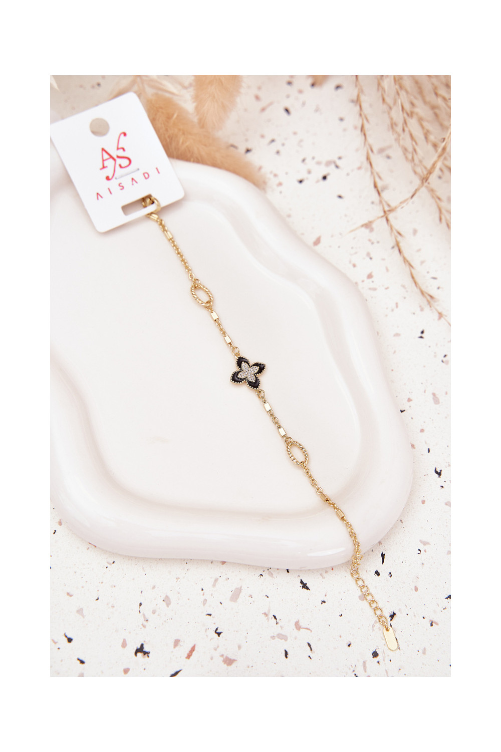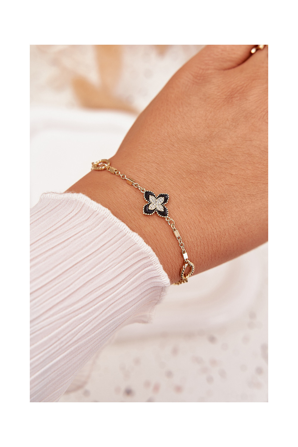 Aproce ar āboliņa motīviem no ķirurģiskā tērauda zelta krāsā