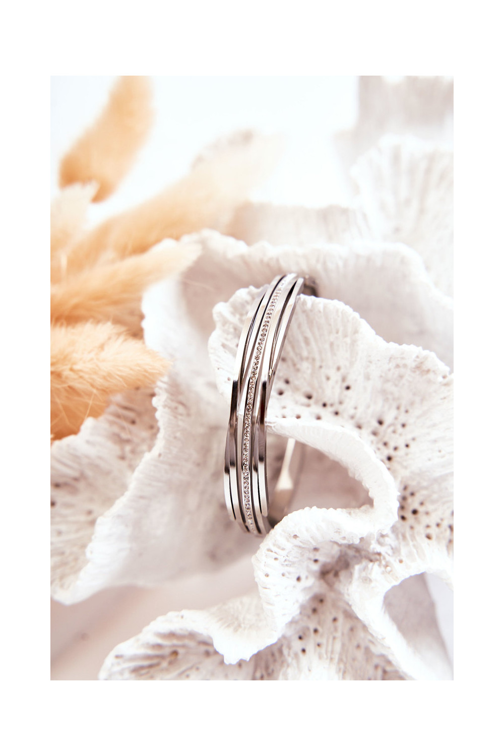 Sidabru krāsas tērauda rokassprādze ar mirdzošām akmentiņām Myrens