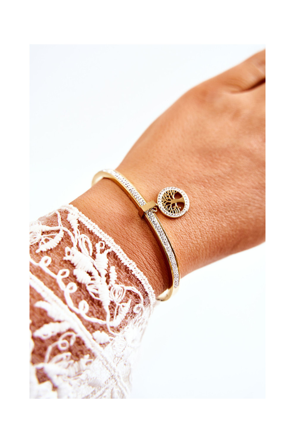 Zelta krāsas tērauda rokassprādze ar cirkoniem „Dzīvības koks" Alive