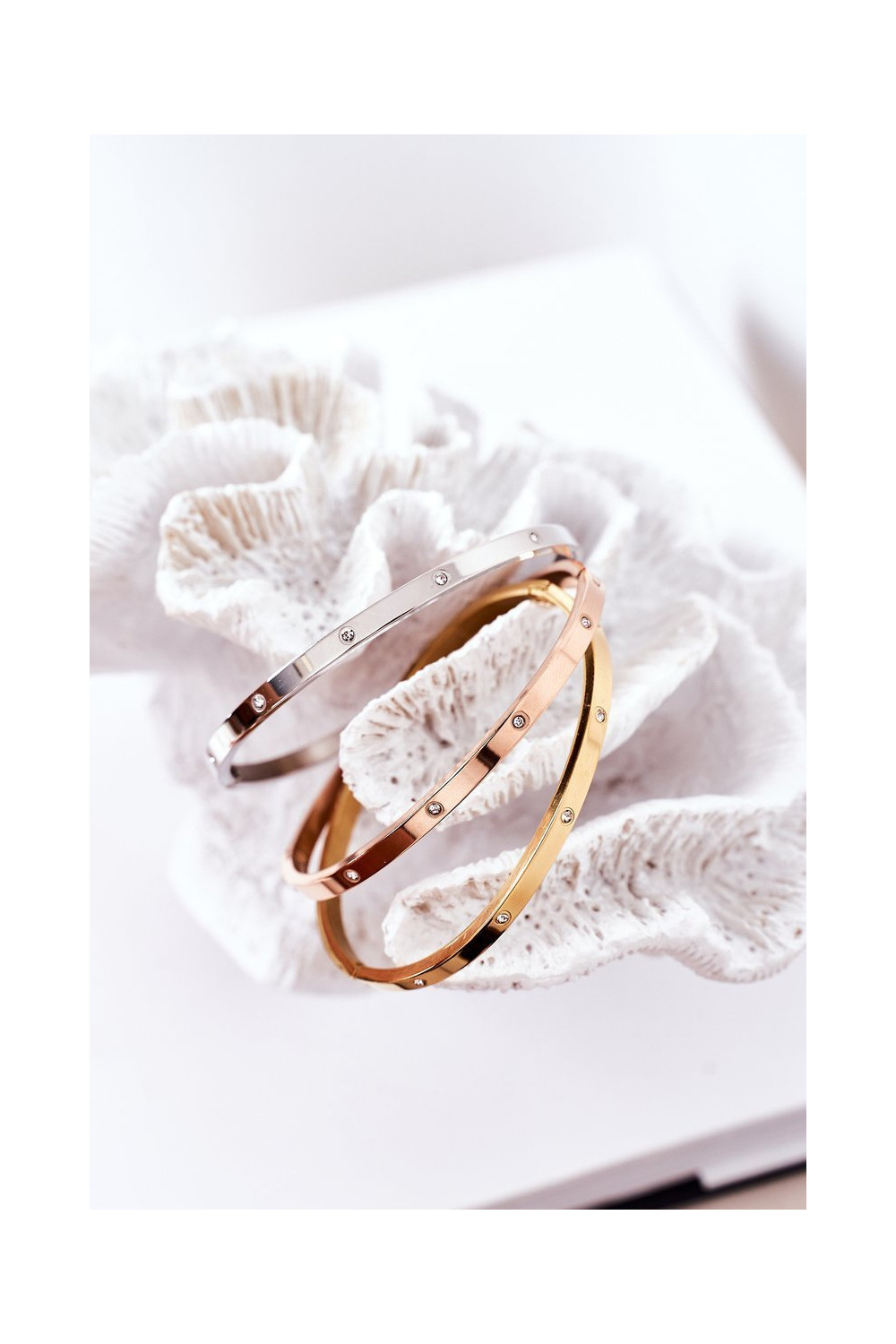 Sidabru krāsas tērauda rokassprādze ar mirdzošām akmentiņām