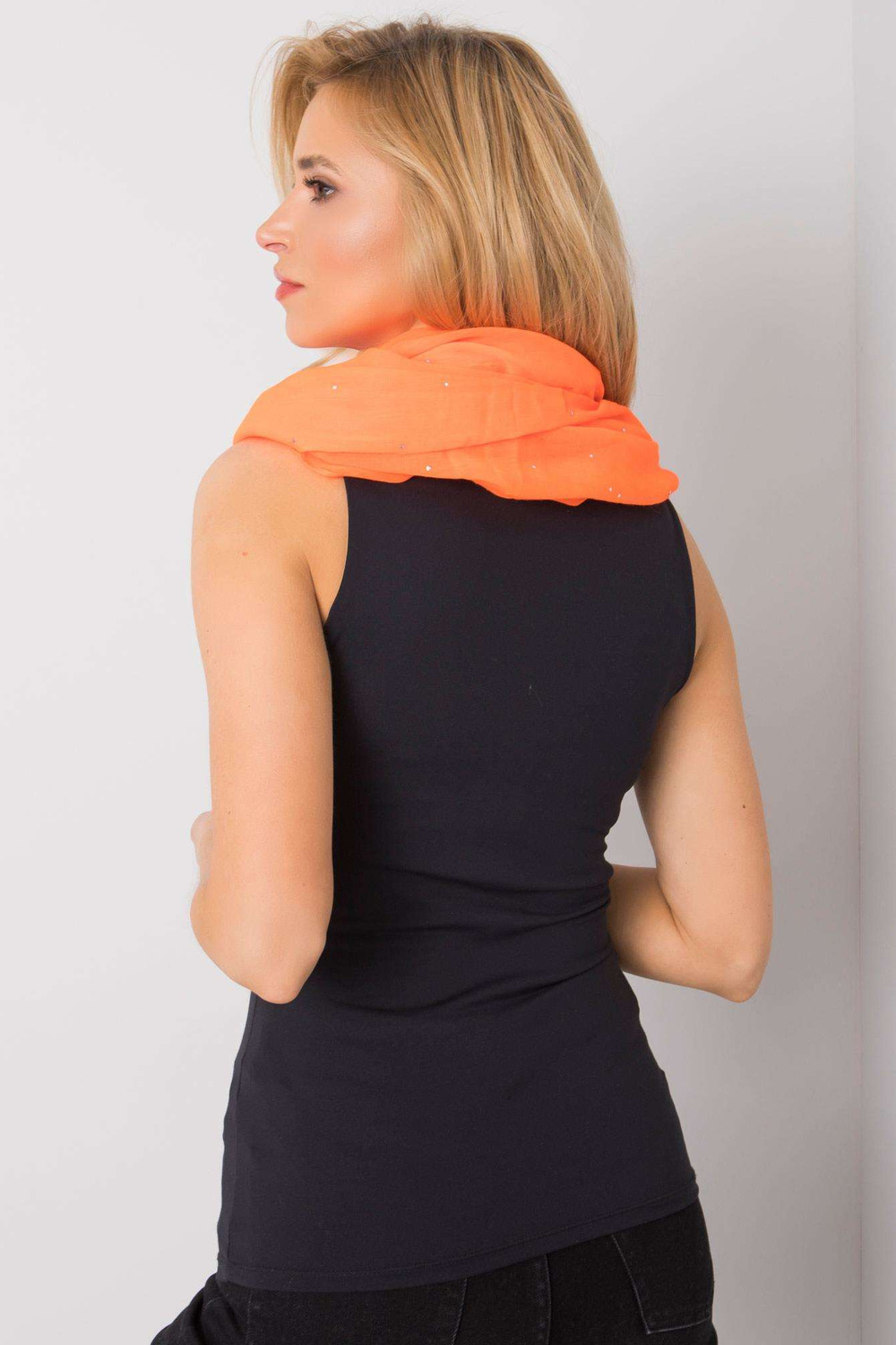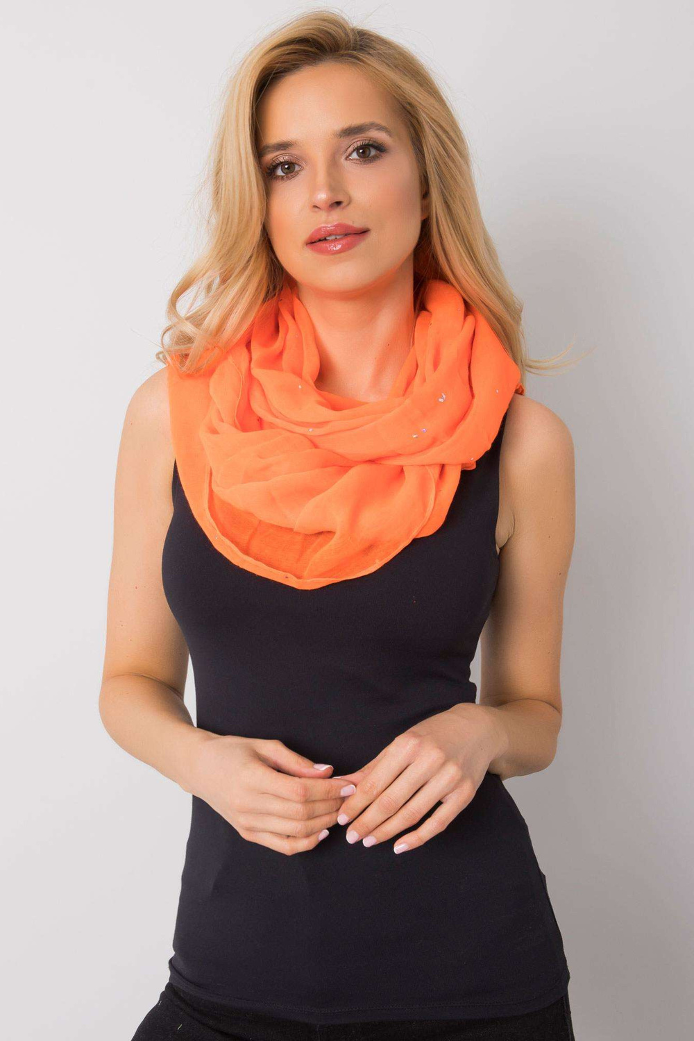 Fluoranžs skurstenis ar spīdīgu aplikāciju.