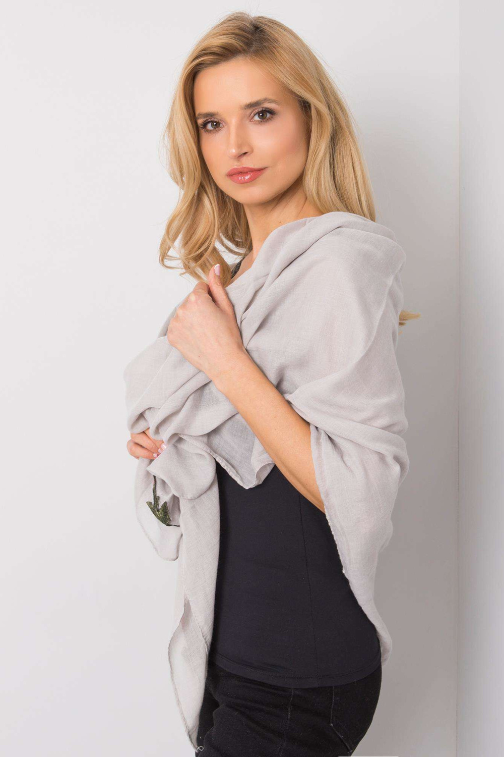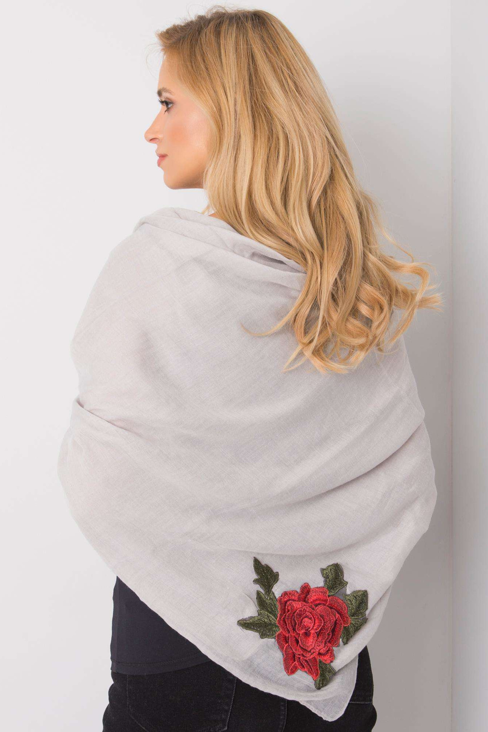 Pelēkpleda ar ziedu svītrām.