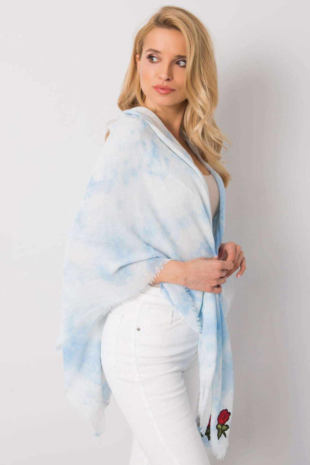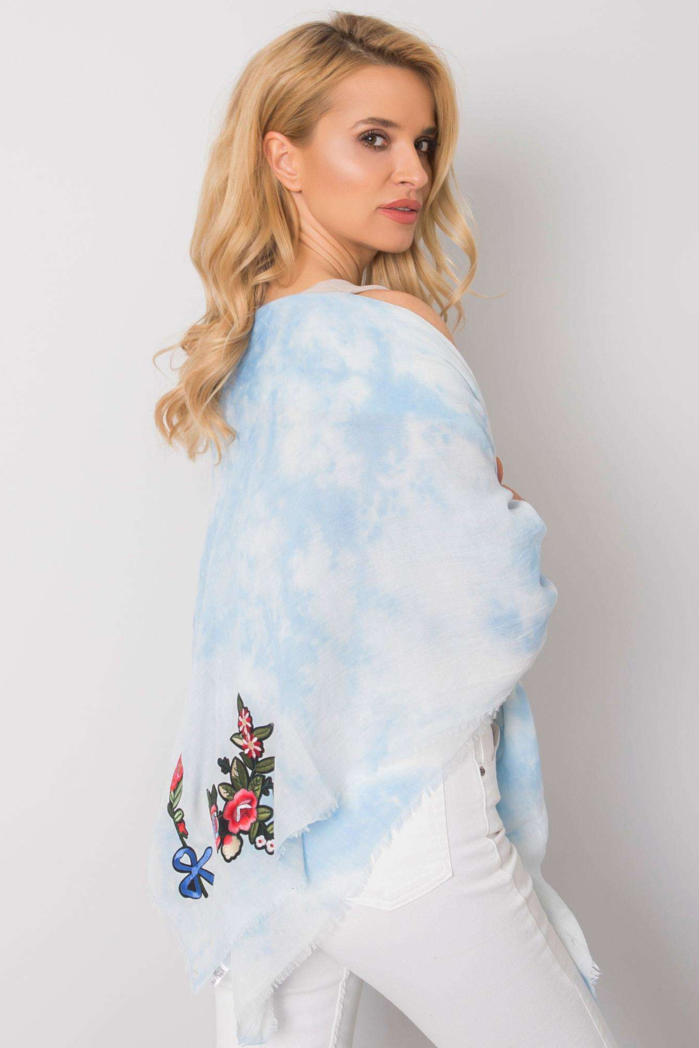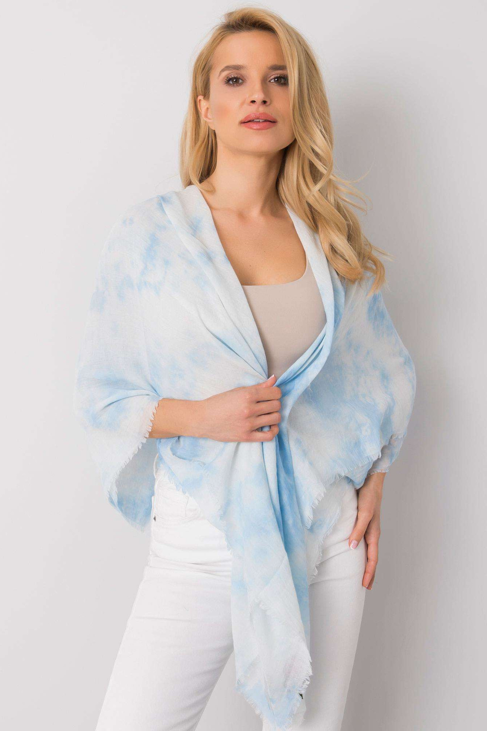 Gaiši zils pleds ar svītrām.