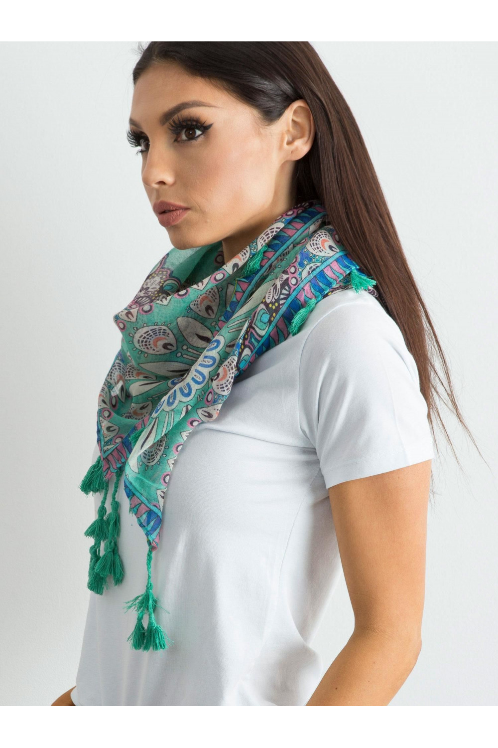 Šale ar etnisku jūras apdruku.