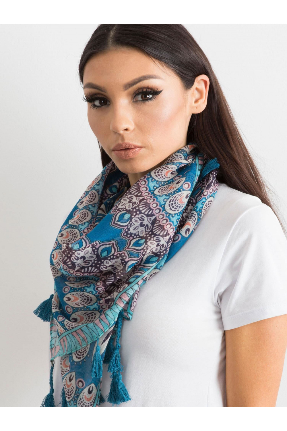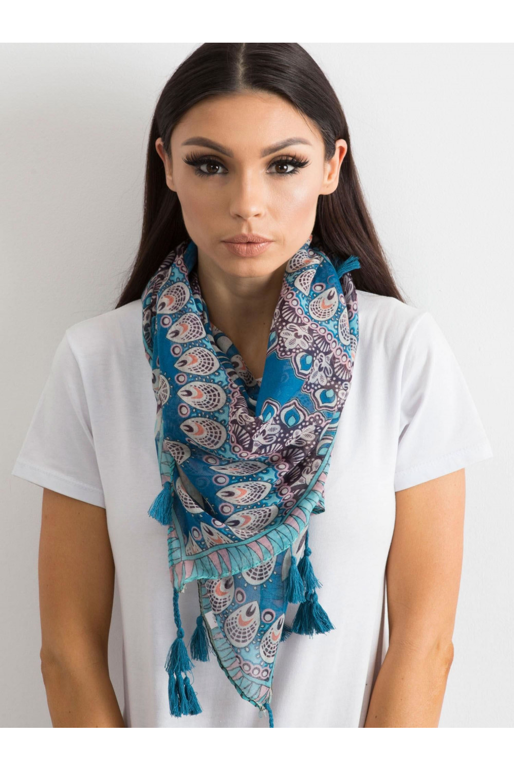 Zila šalle ar etnisku rakstu .