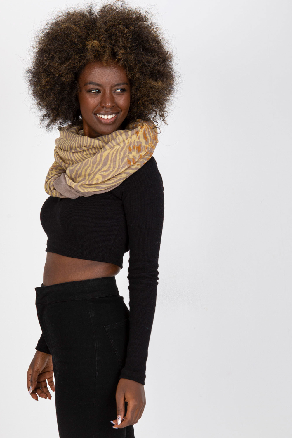 Tumši bēšs-dzeltens skurstenis ar motīvu .