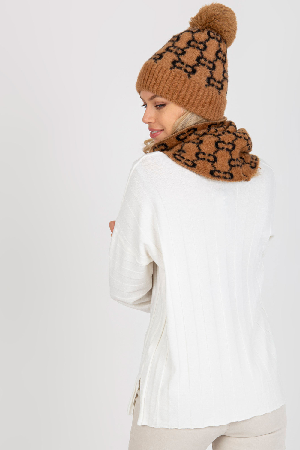Kamieļa un melna ziemas šalle ar rakstiem .