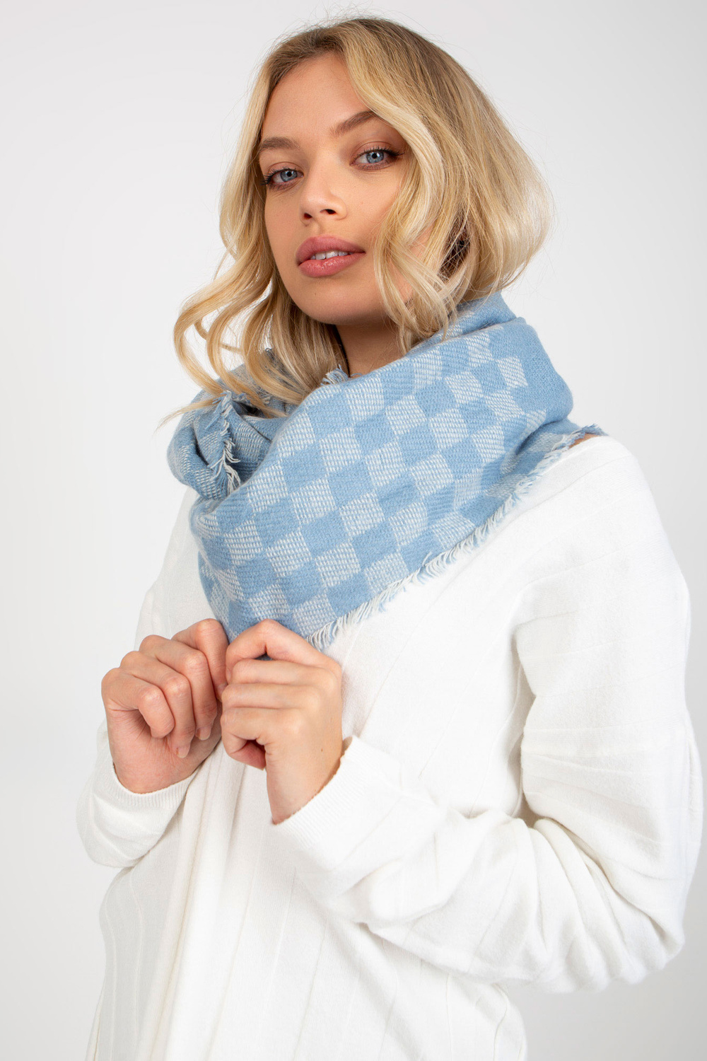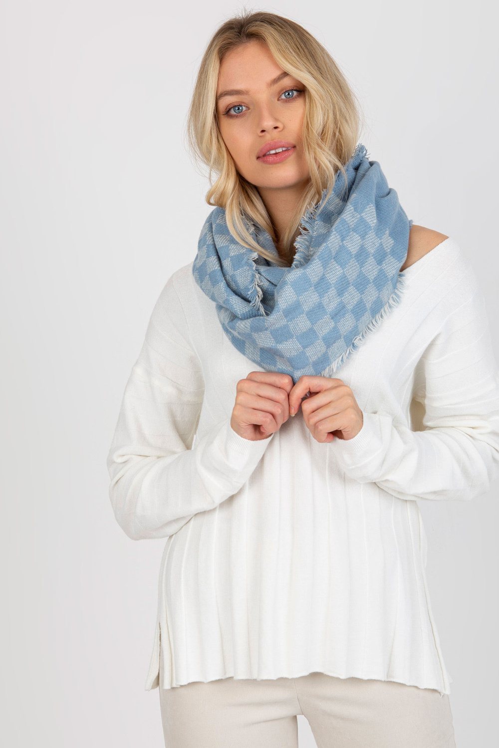 Zilā un baltā sieviešu ziemas šalle ar vilnu .