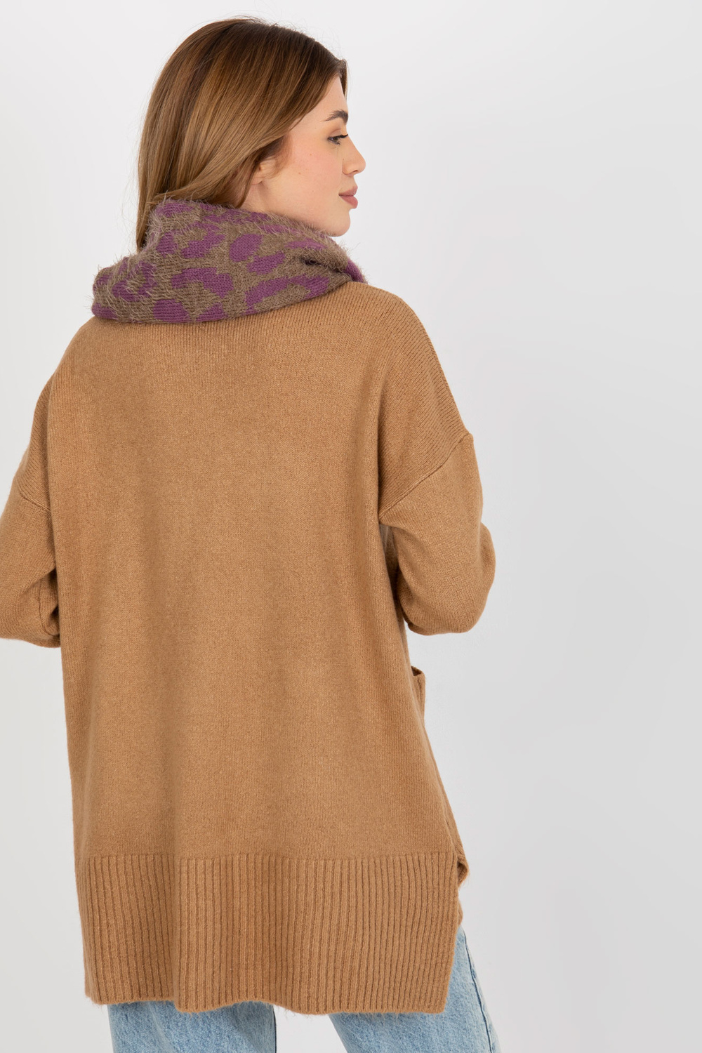 Tumši bēši violets ziemas skurstenis ar rakstiem.