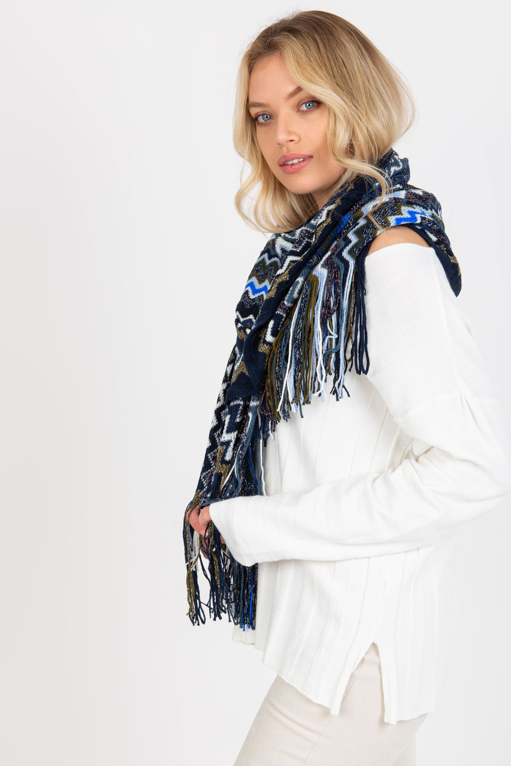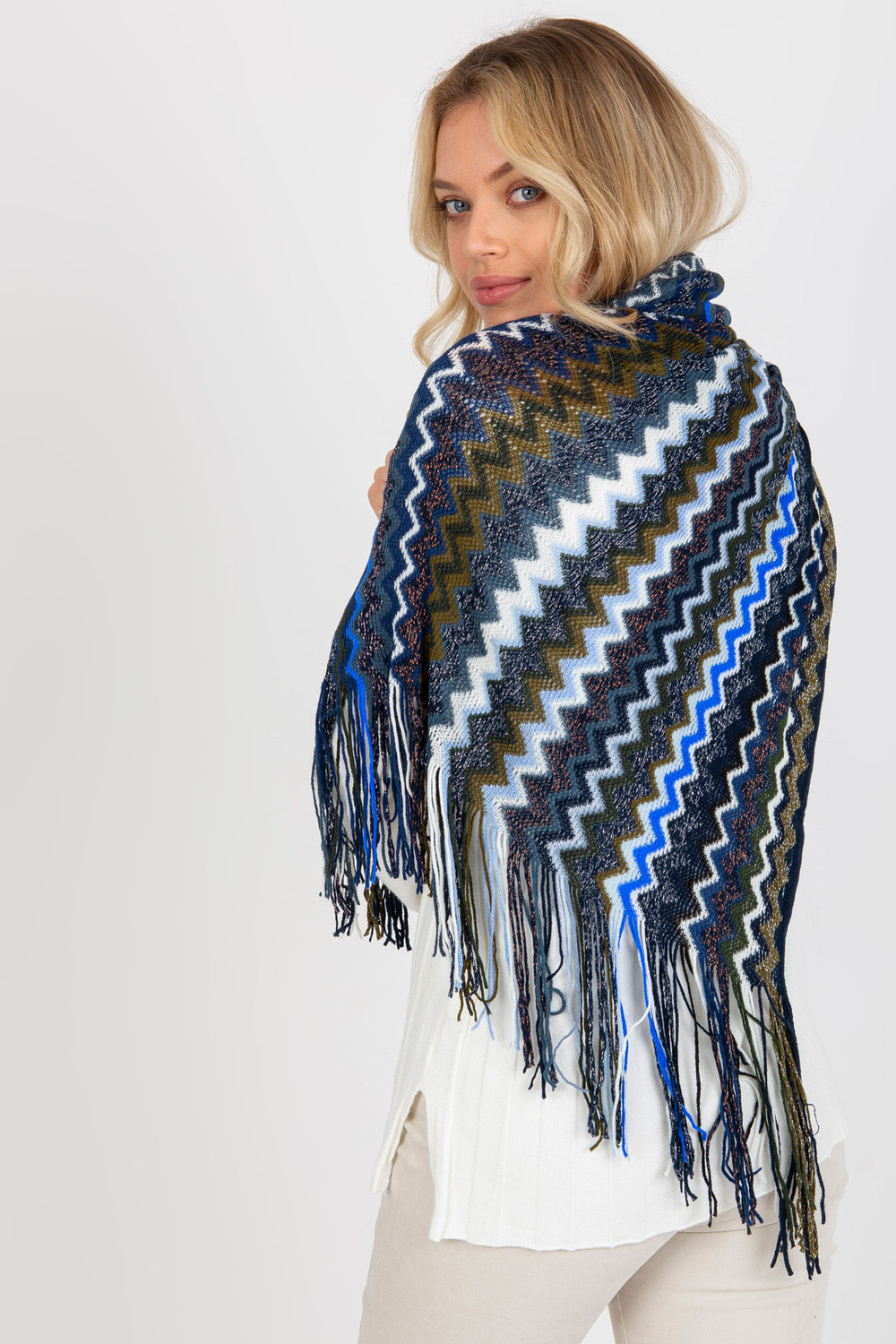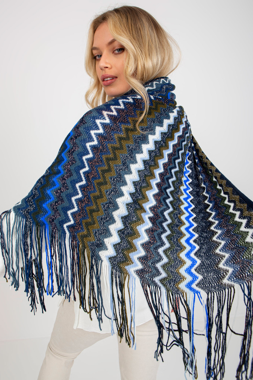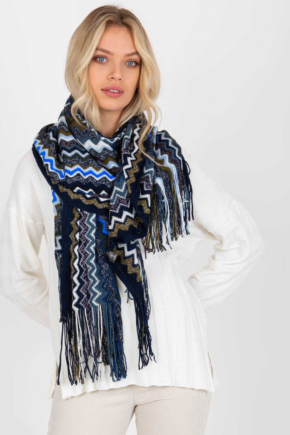 Trūši zila sieviešu ziemas šalle ar rakstiem .