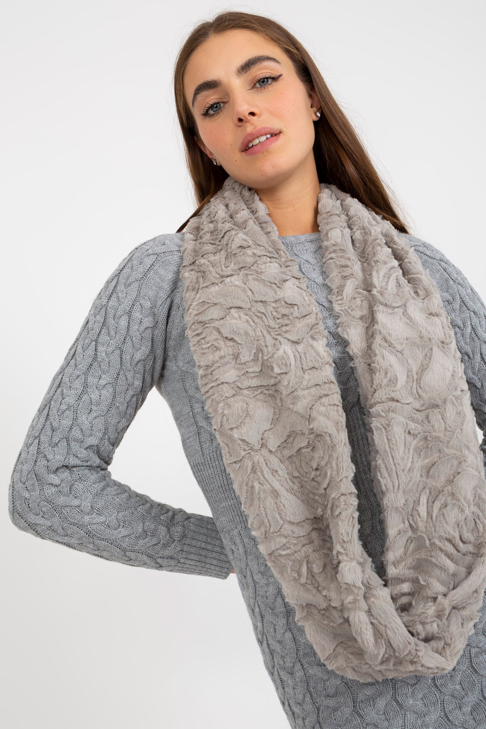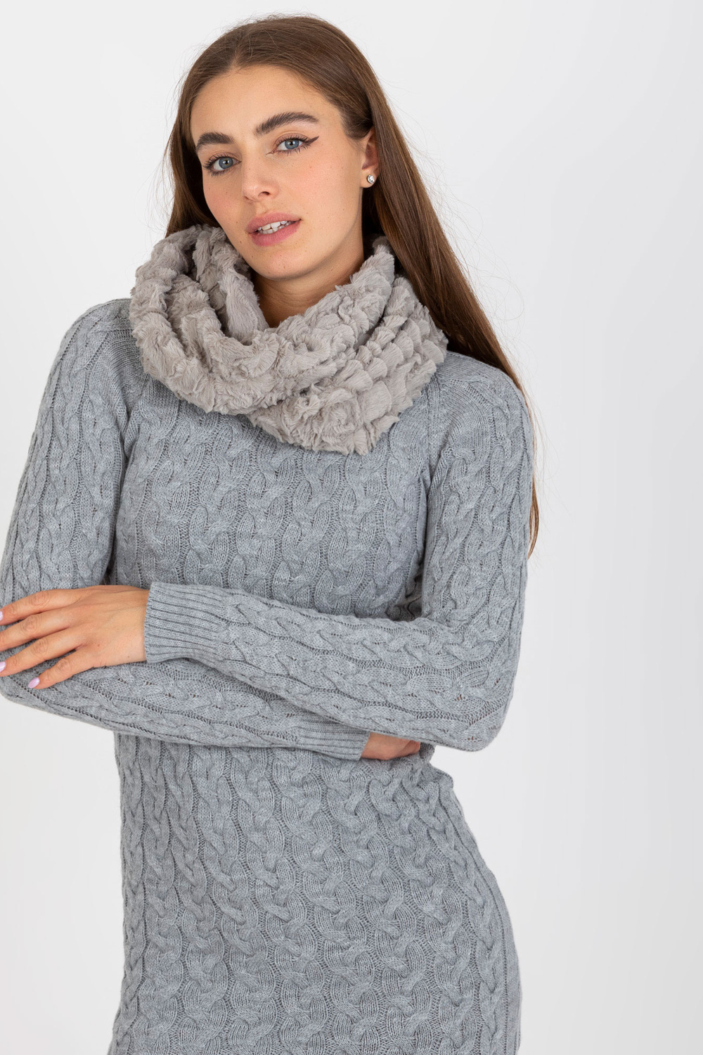 Pelēks sieviešu mākslīgās kažokādas skurstenis.