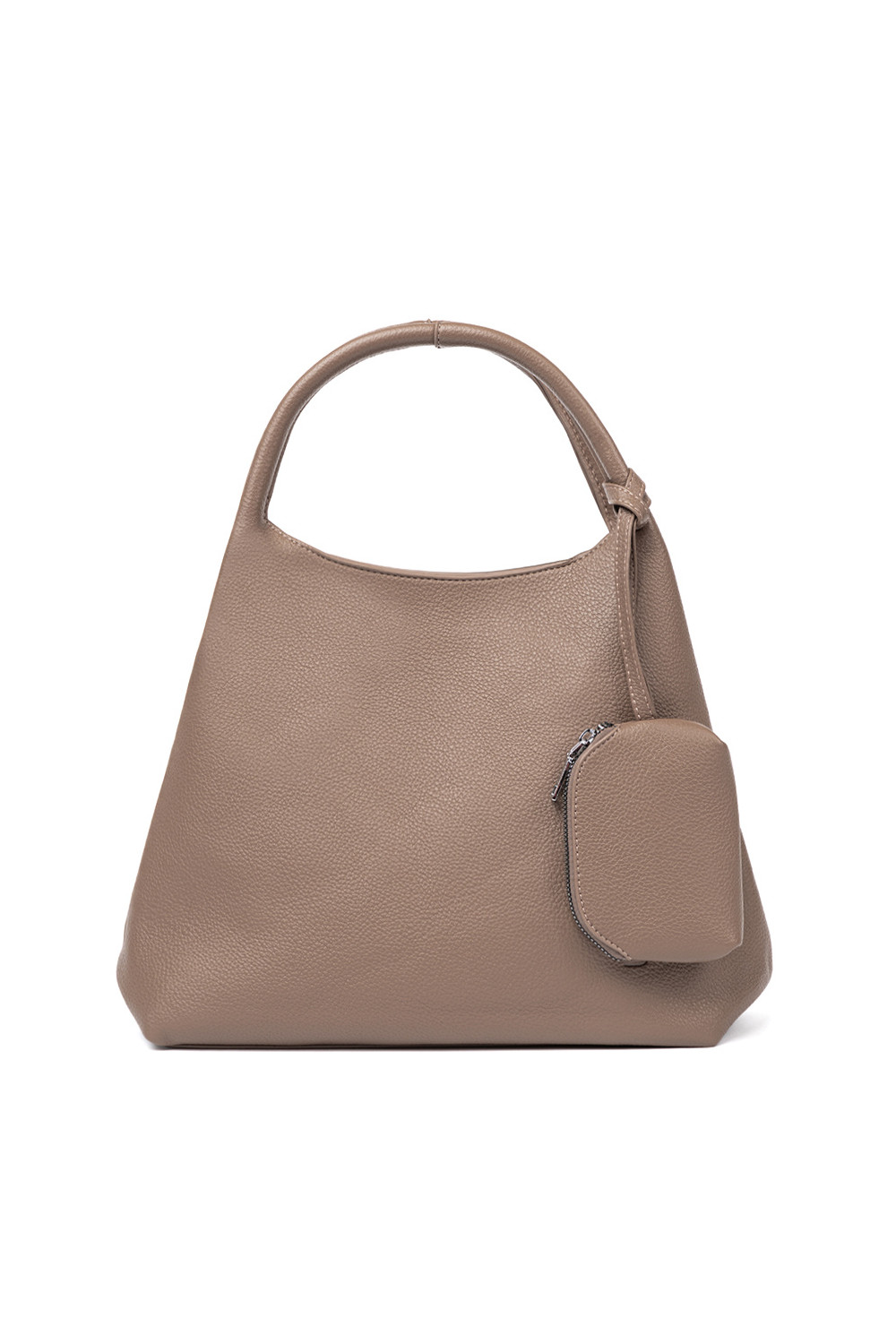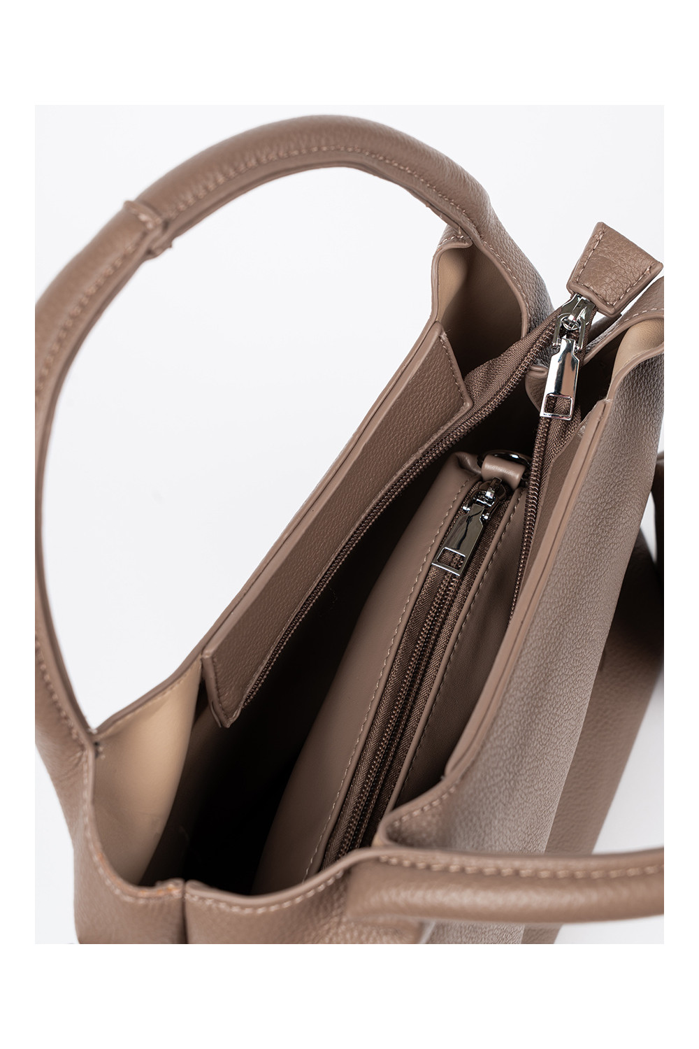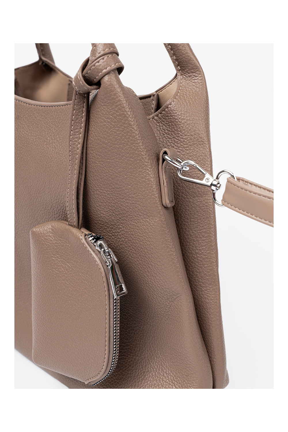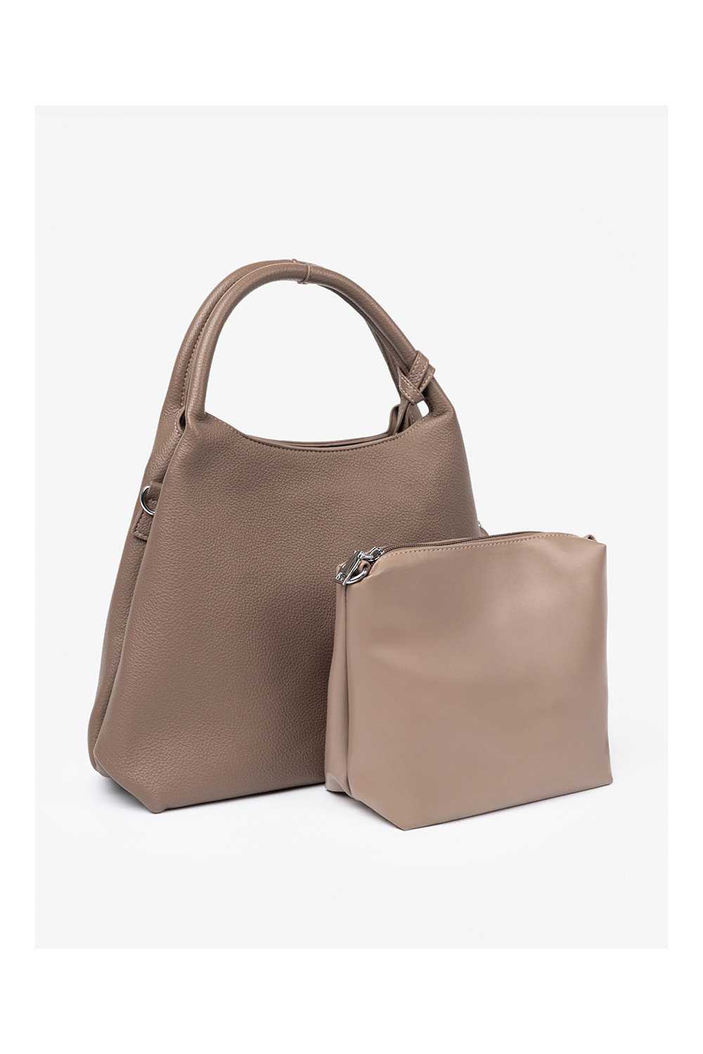 eleganta tumši smilšu krāsas soma ar kosmētiku iekšā