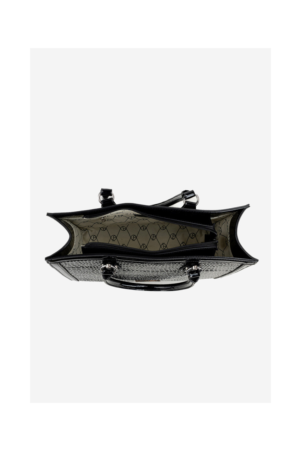 Lakas soma ar iespiestu rakstu NOBO BAG6150-M20 melnā krāsā