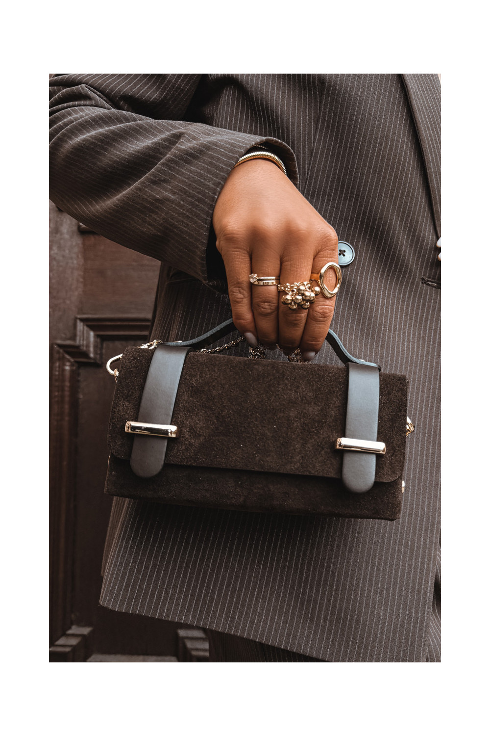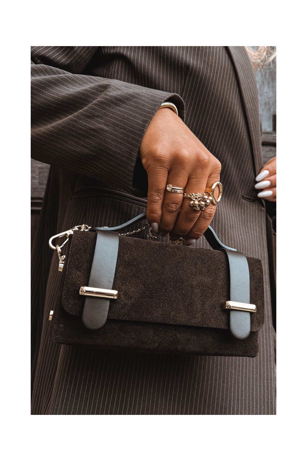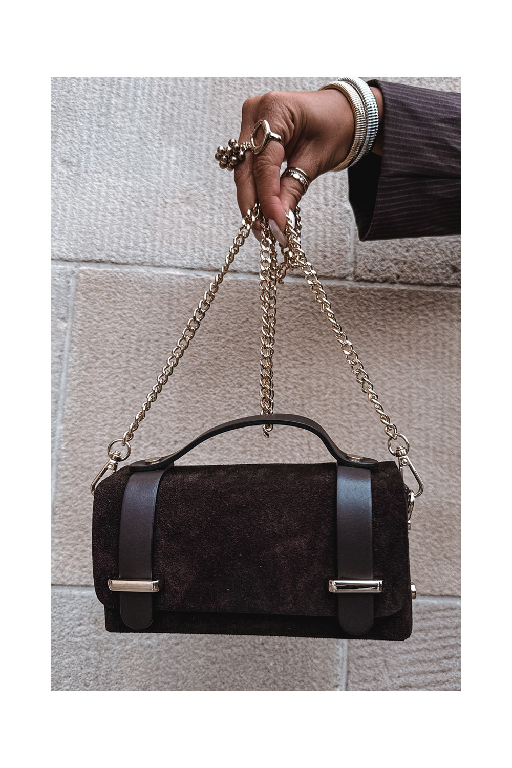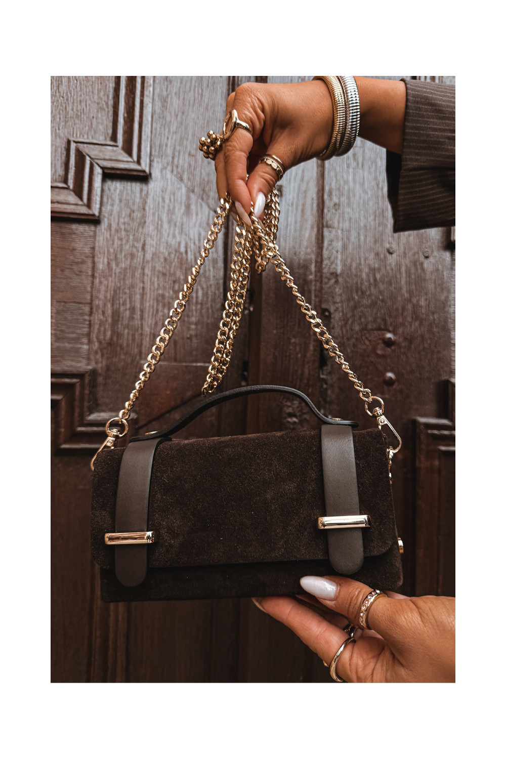 Šokolādes krāsas mākslīgā zamša soma ar ķēdītēm Nivra