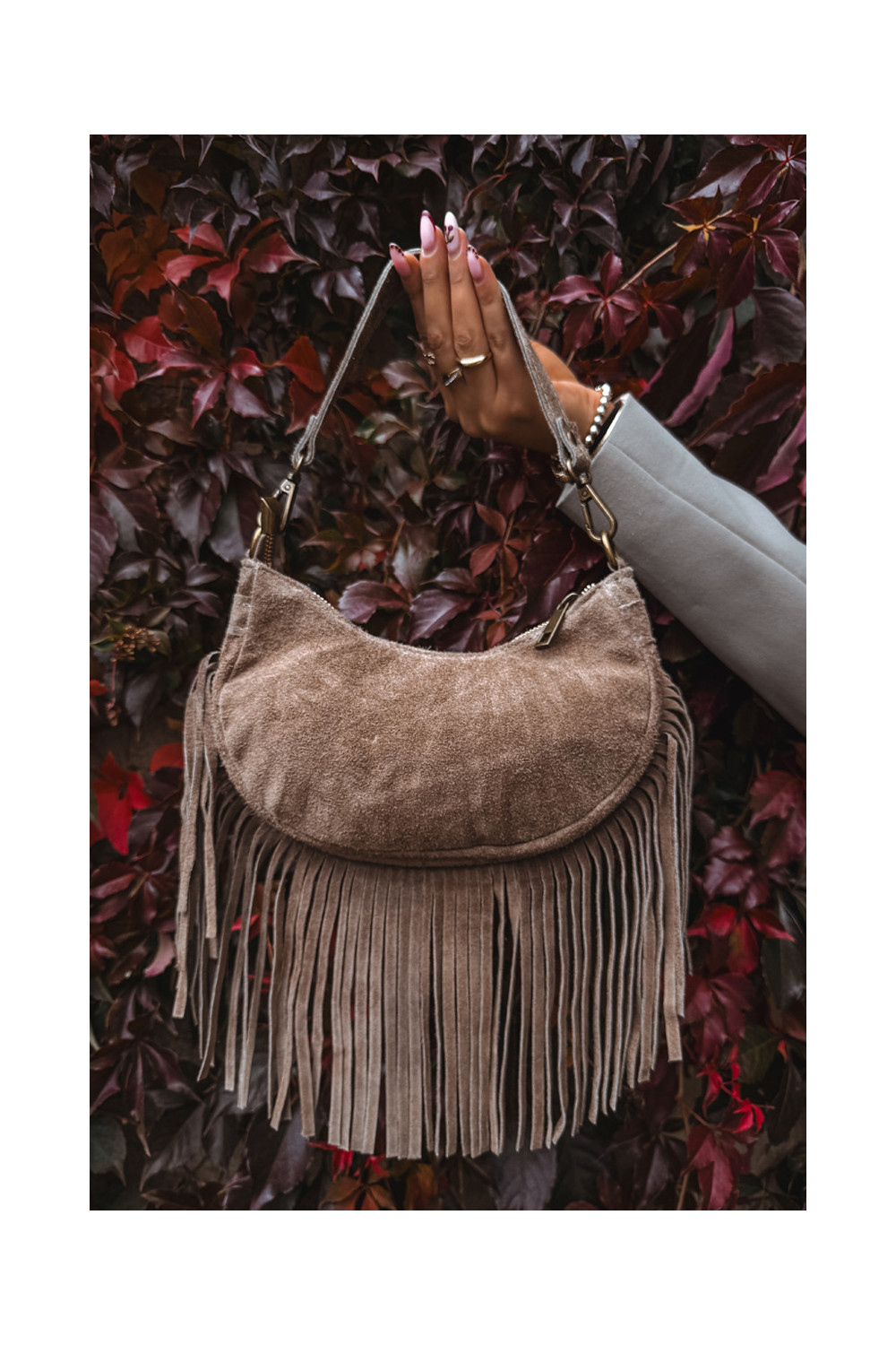 Tumsmāla krāsas mākslīgā zamša soma ar pušķiem Aurelisse