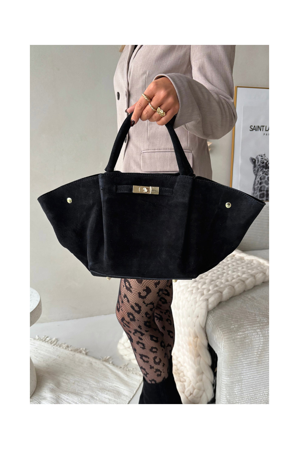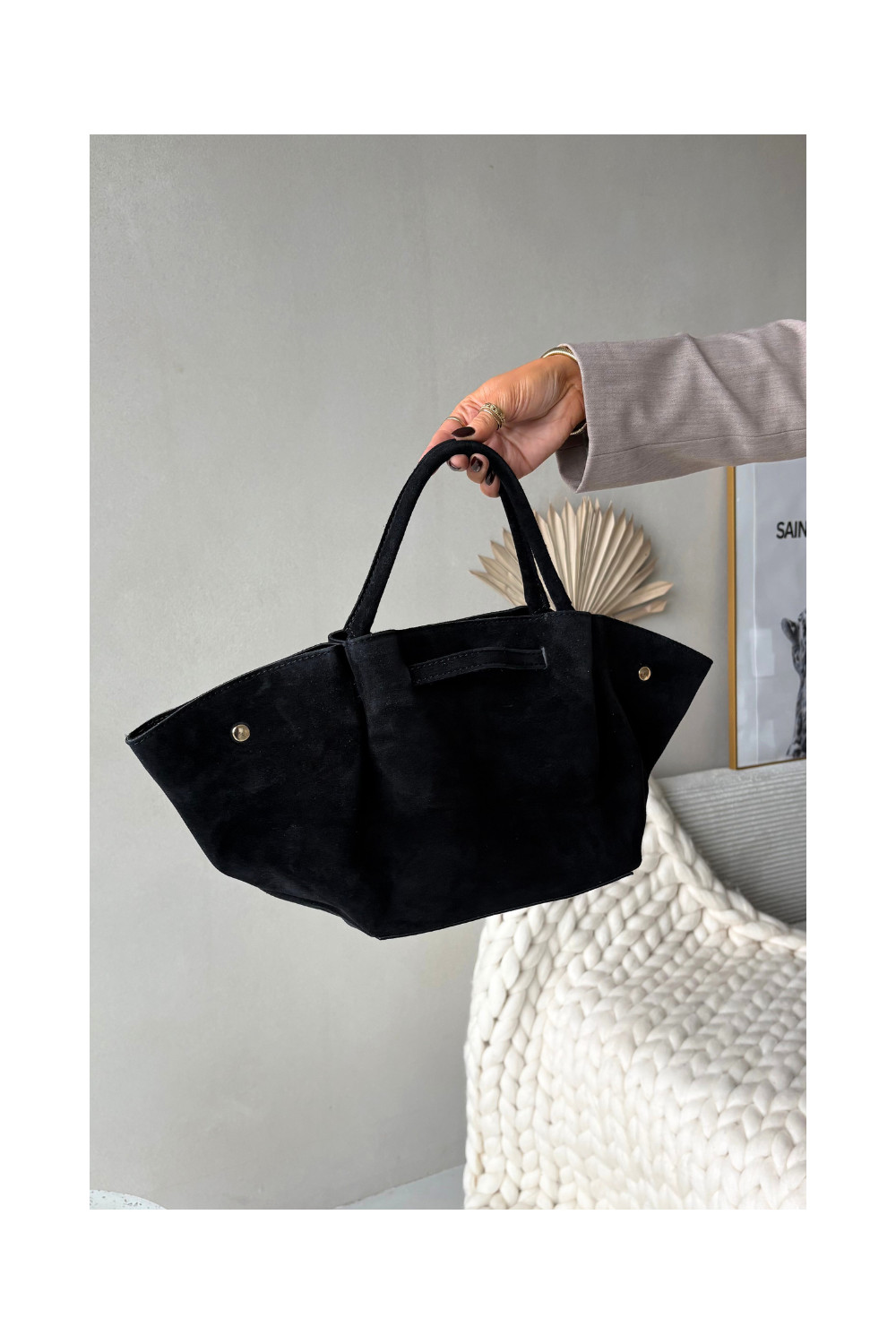 Soma Z Naturalnego Zamszu Melnas krāsas Fiorenza