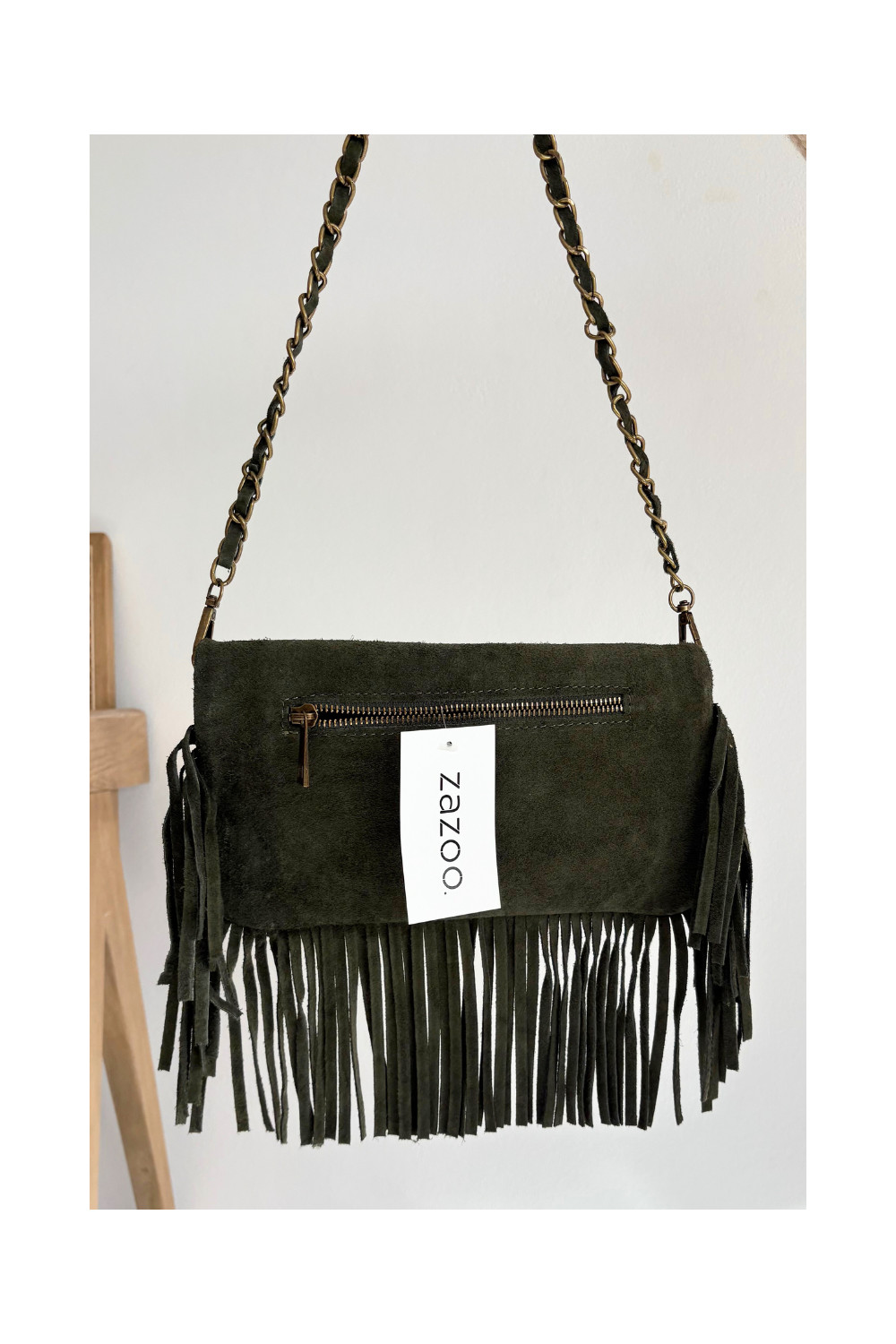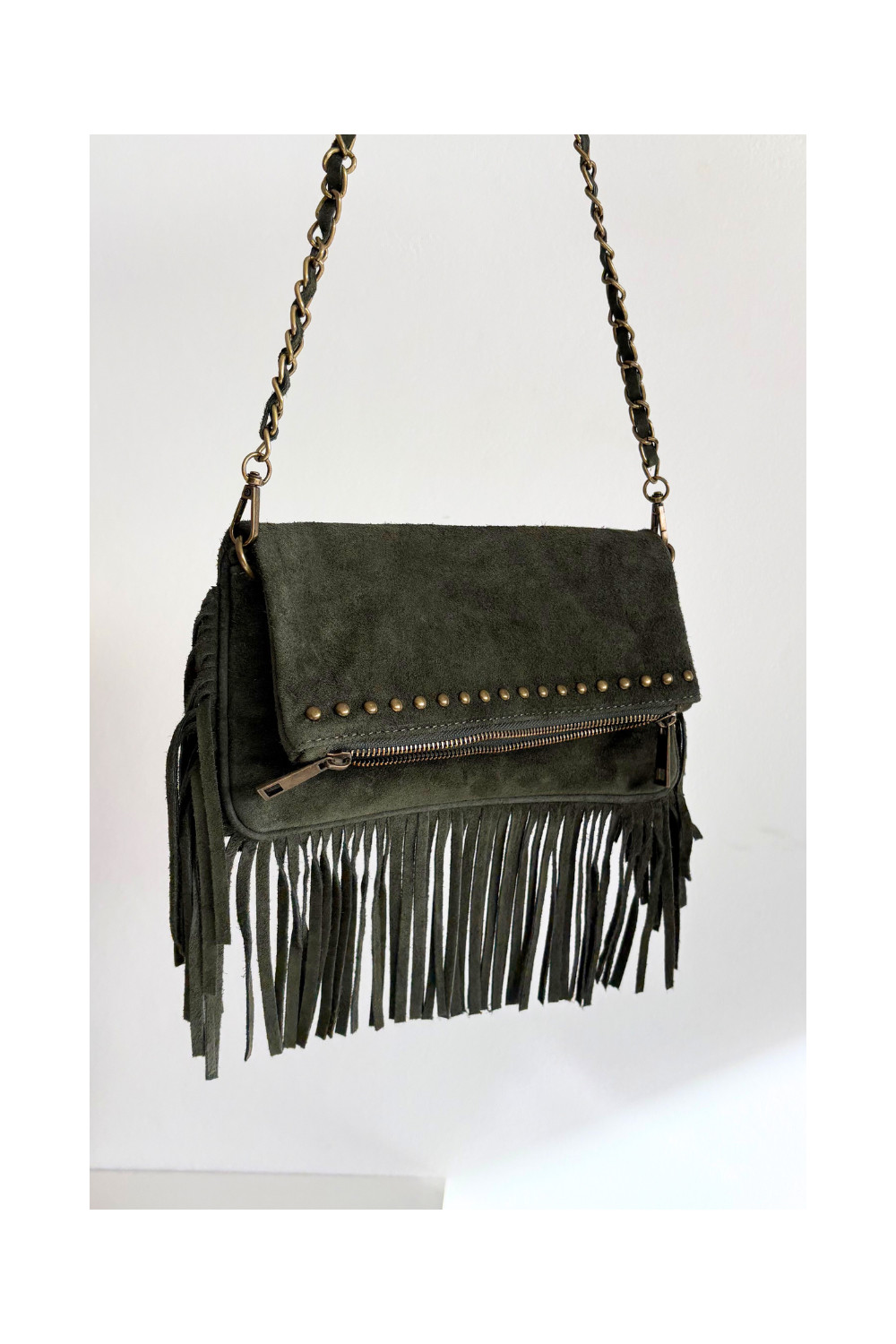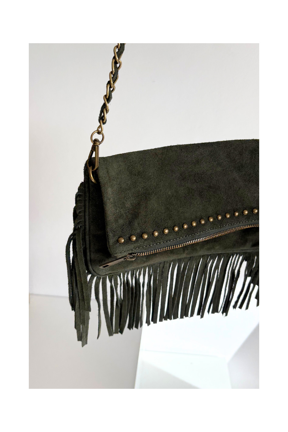 zamšādasoIna Soma ar bārkstīm Uz ķēdes Tumšszielona Ieslēgtsrella