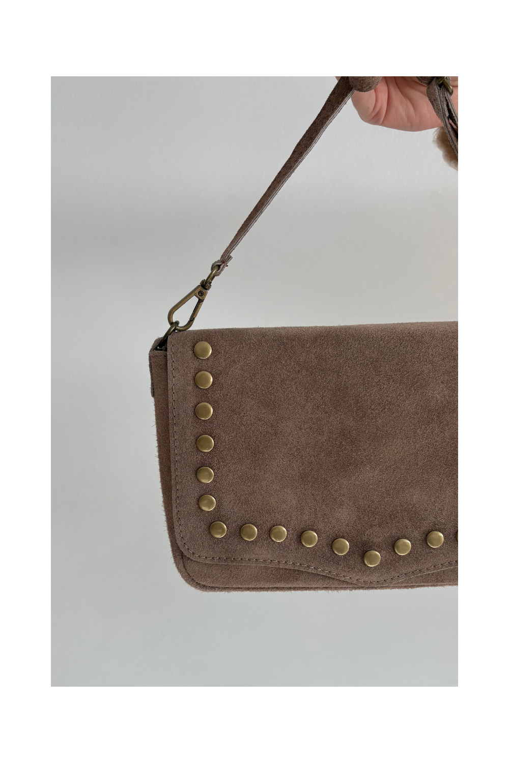 Zamšs ādas soma ar kniedēm, ziloņkaula krāsā Rhenna