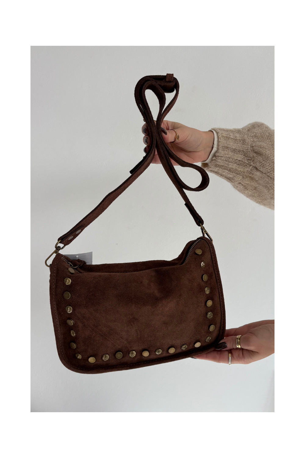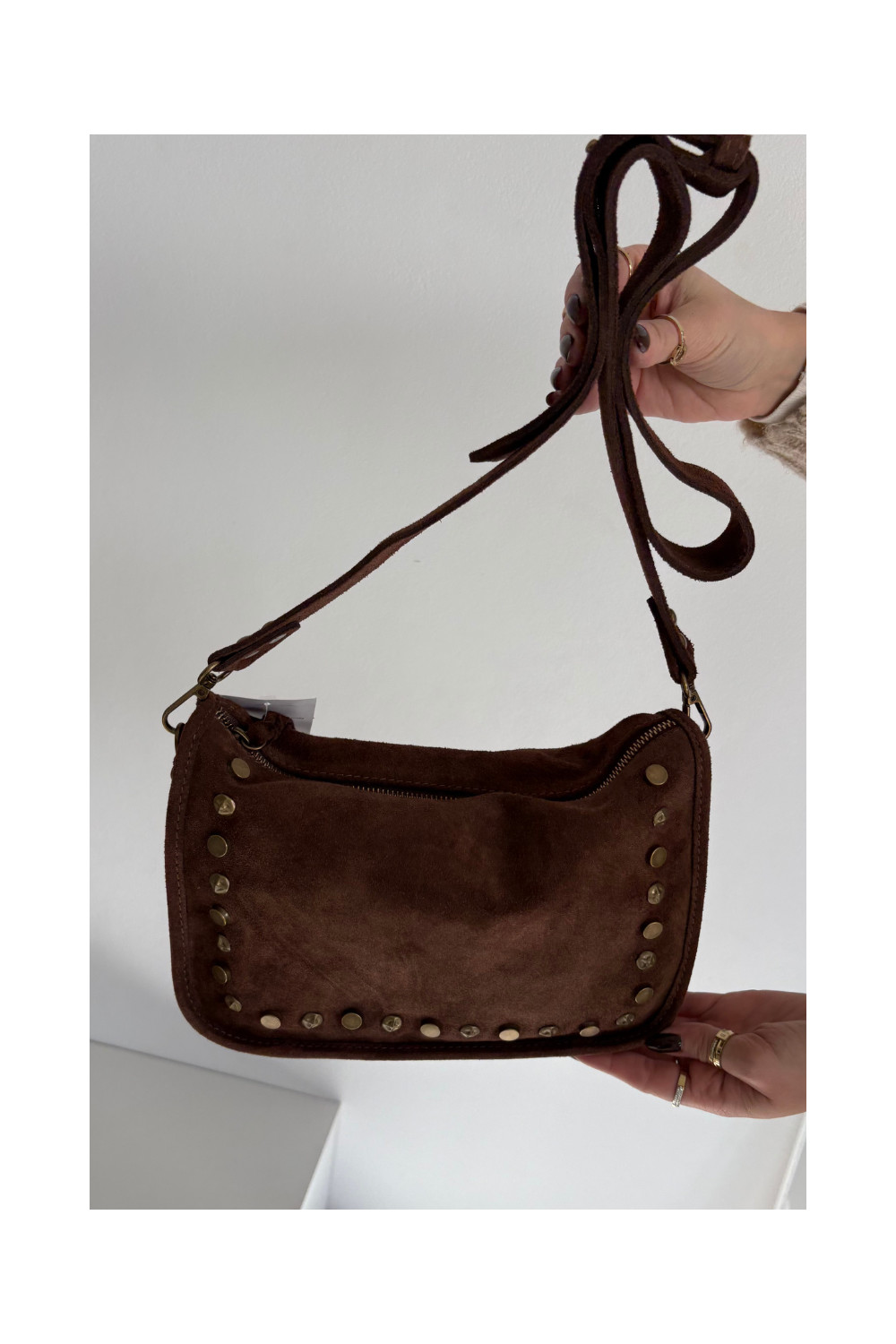 Zamšs soma, rotāta ar kalnu kristāliem, brūna Savra