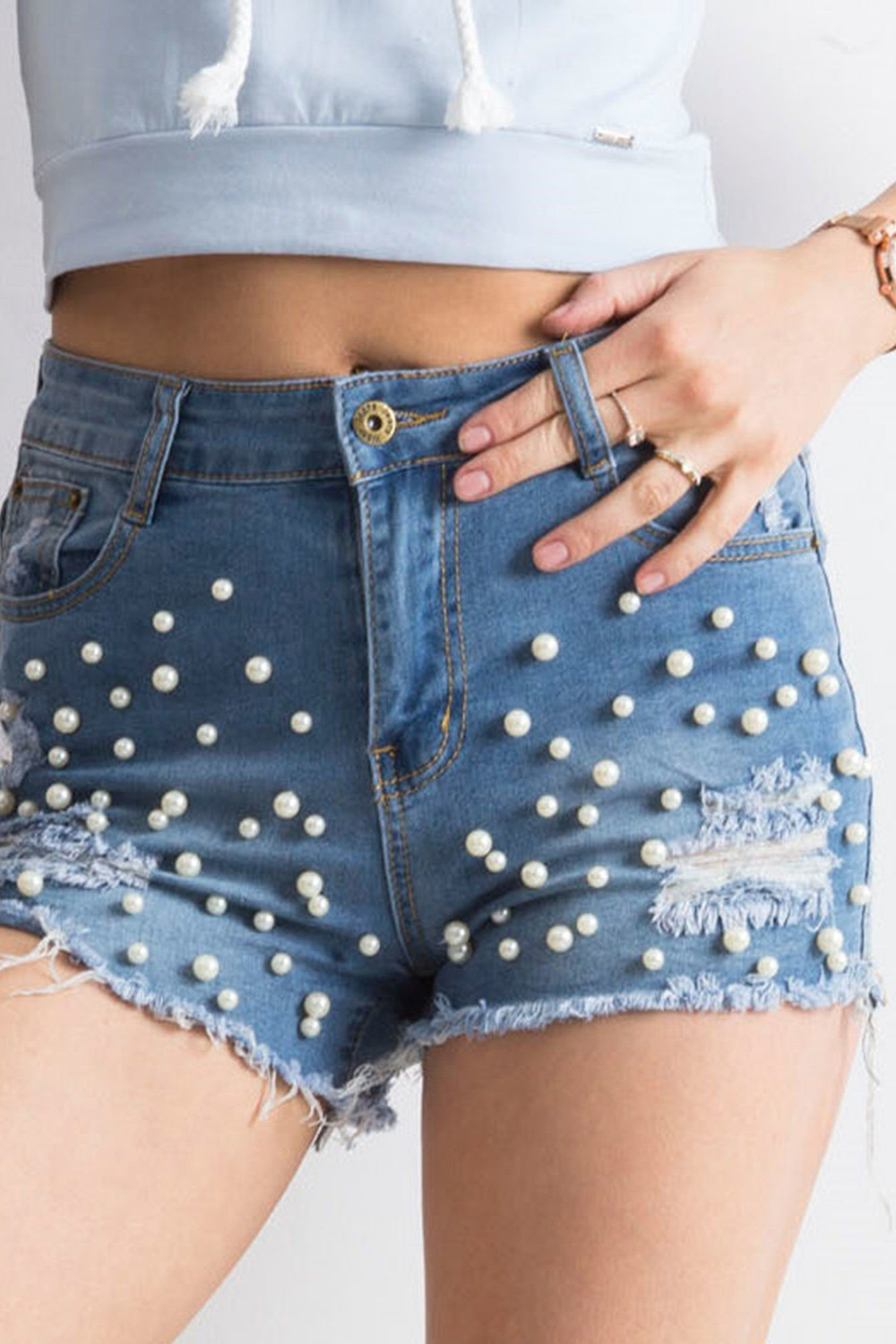 Zili džinsa šorti ar pērlēm< font style="vertical-align: inherit;"> .