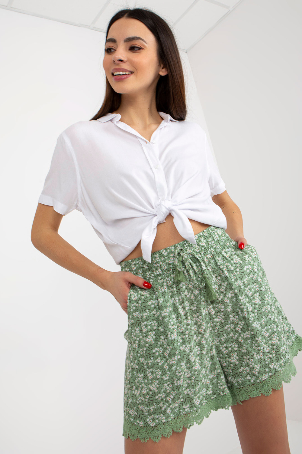 Gaiši zaļi ikdienas šorti ar ziediem ar POCKETS SUBLEVEL
