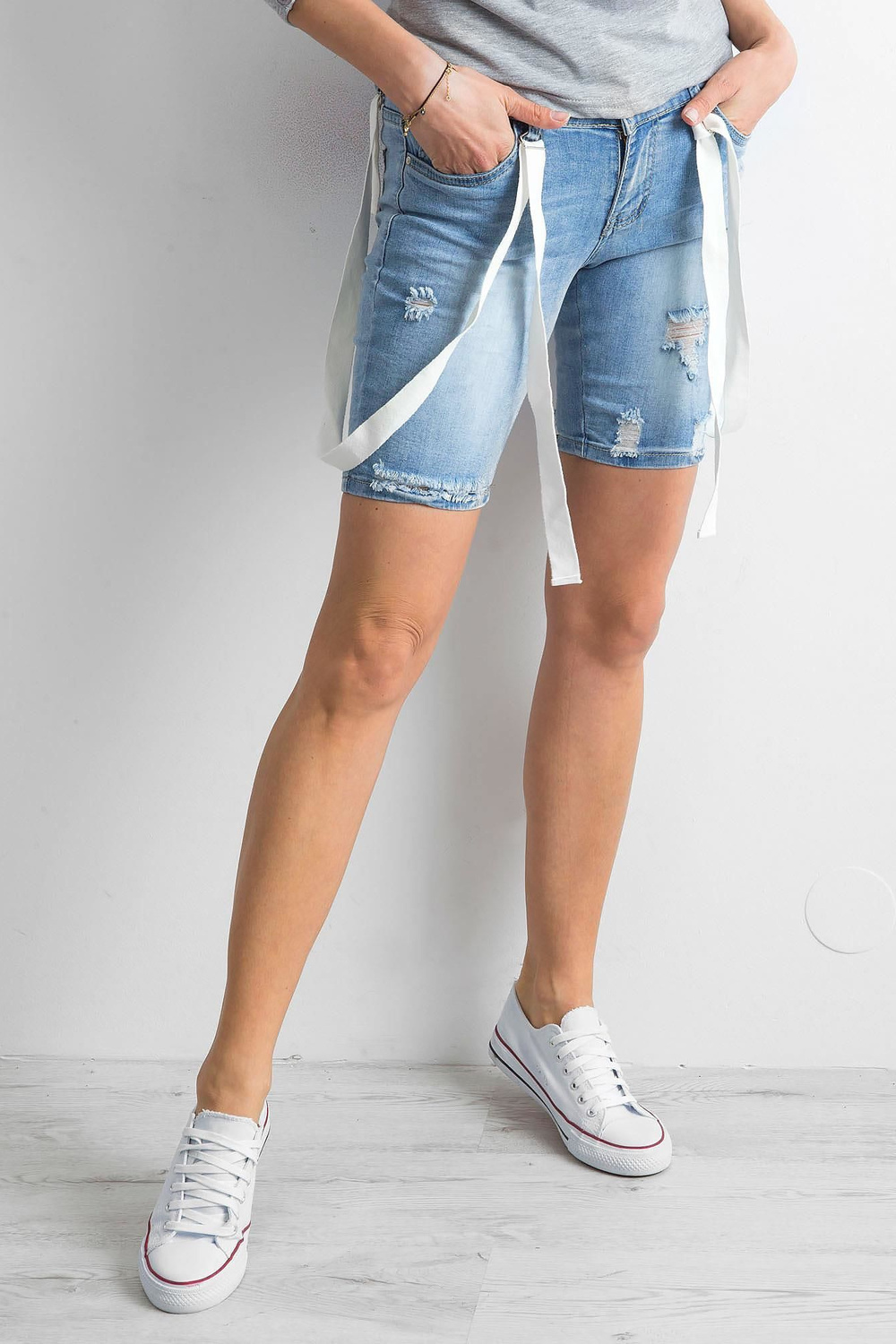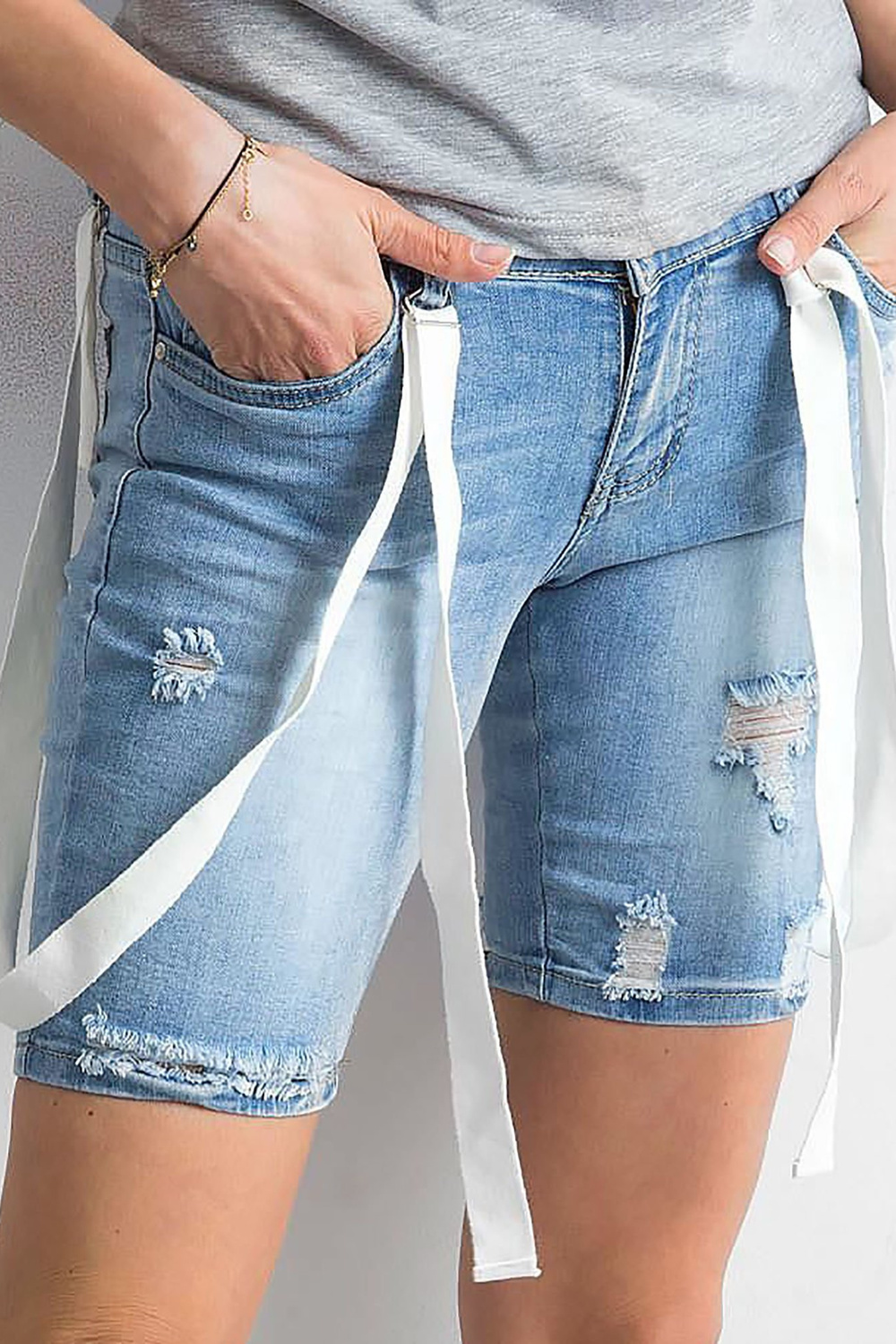 Sieviešu zili saspiesti džinsa šorti .