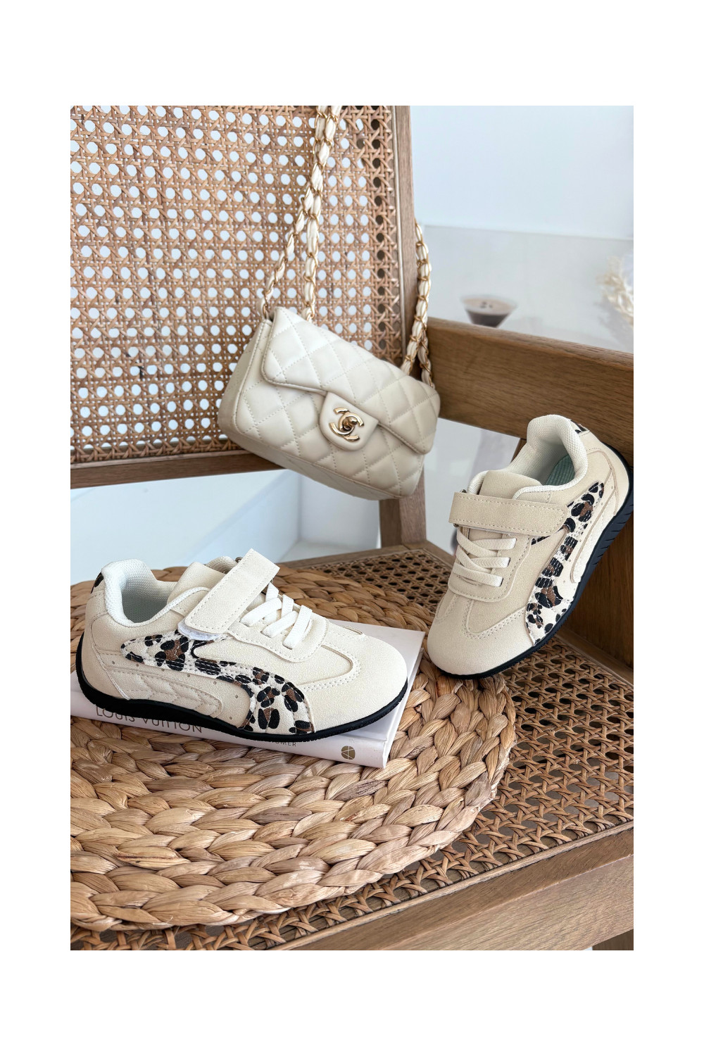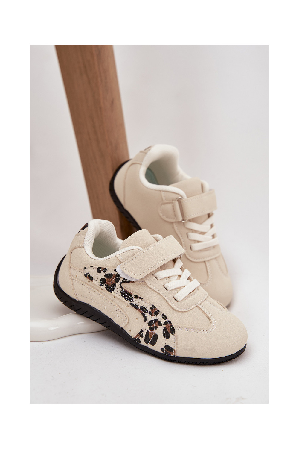 Bērnu sporta apavi ar lipīgu aizdari smilšu krāsā ar rakstiem Perrin