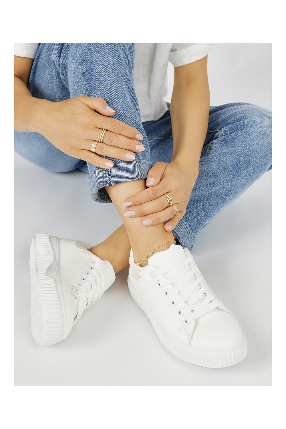 Baltas klasiska modeļa sieviešu kedas z bēšsm elementem
