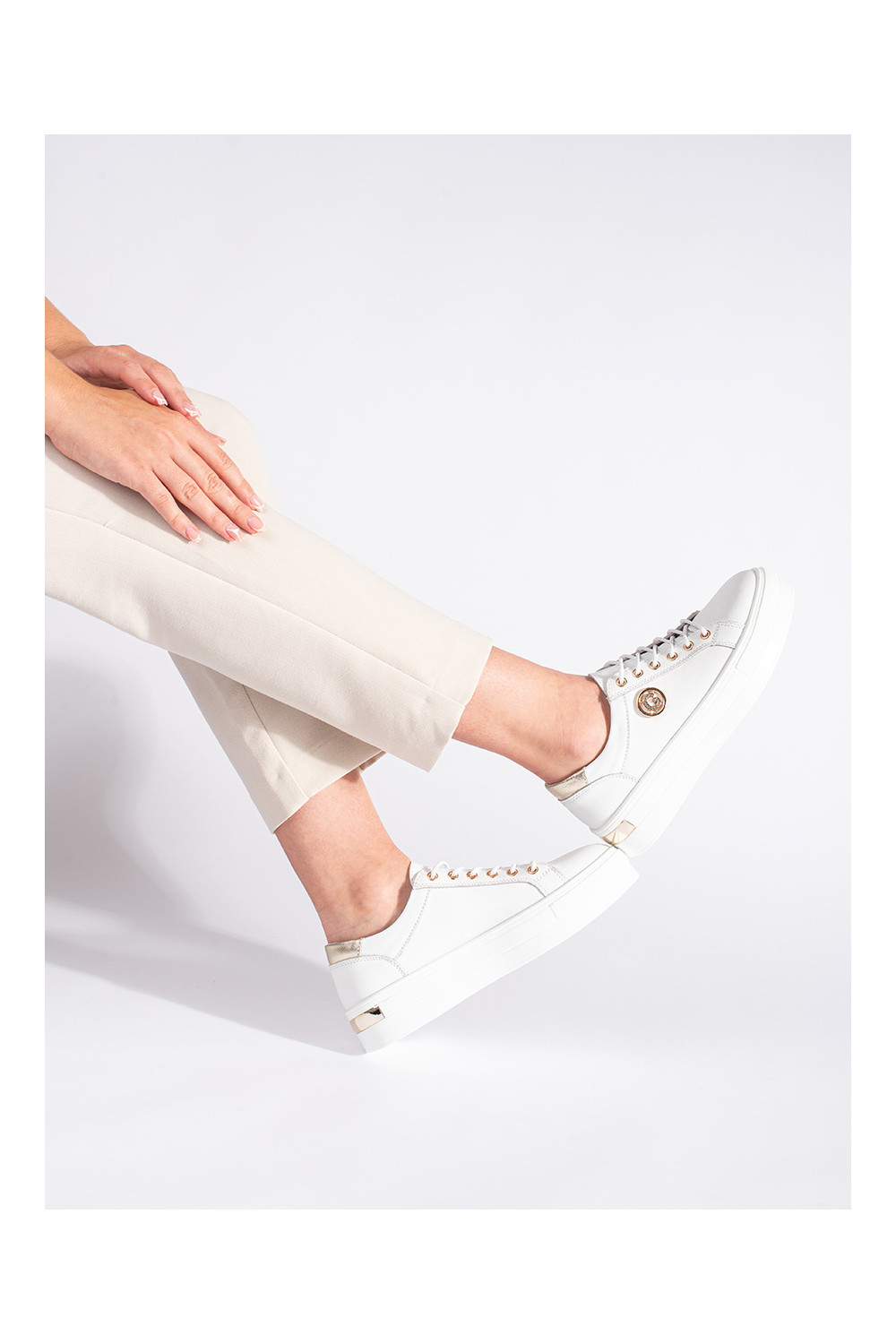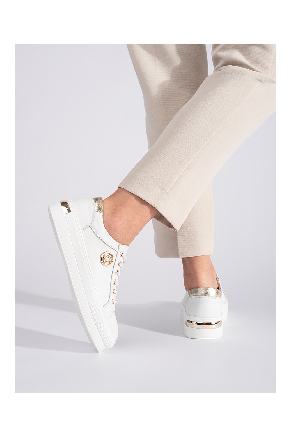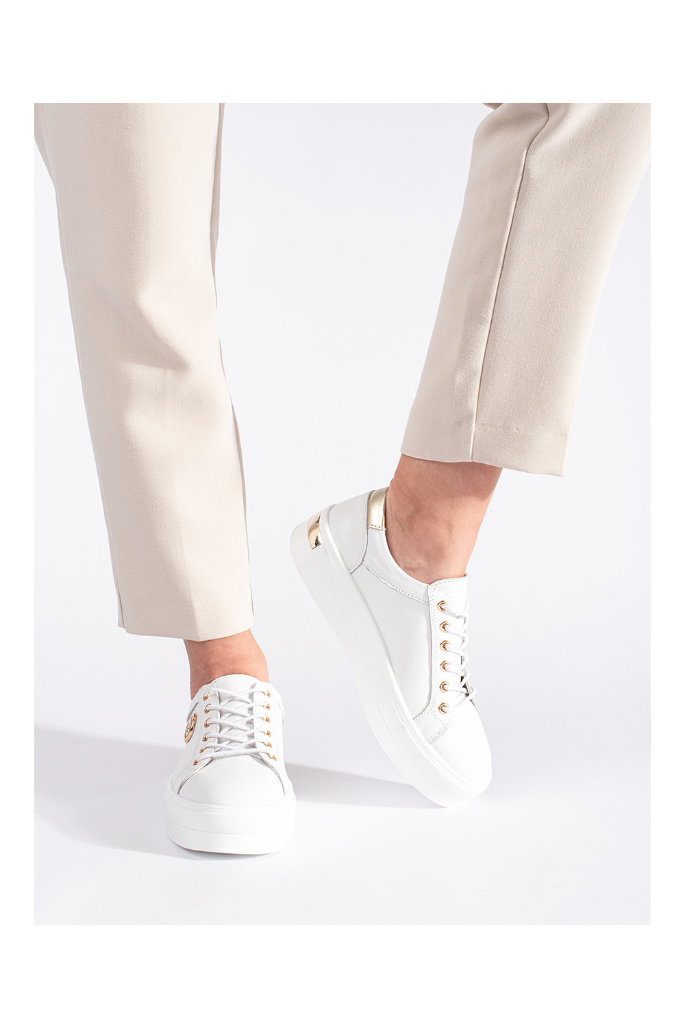 baltas krāsas āda Sporta apavi uz biezas zoles