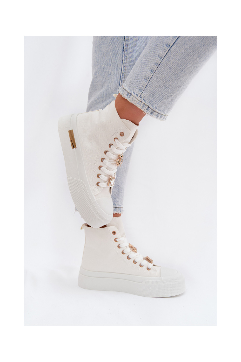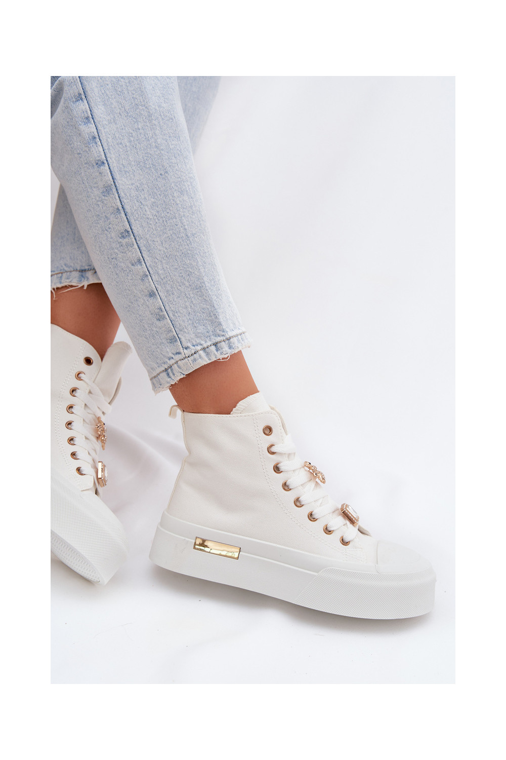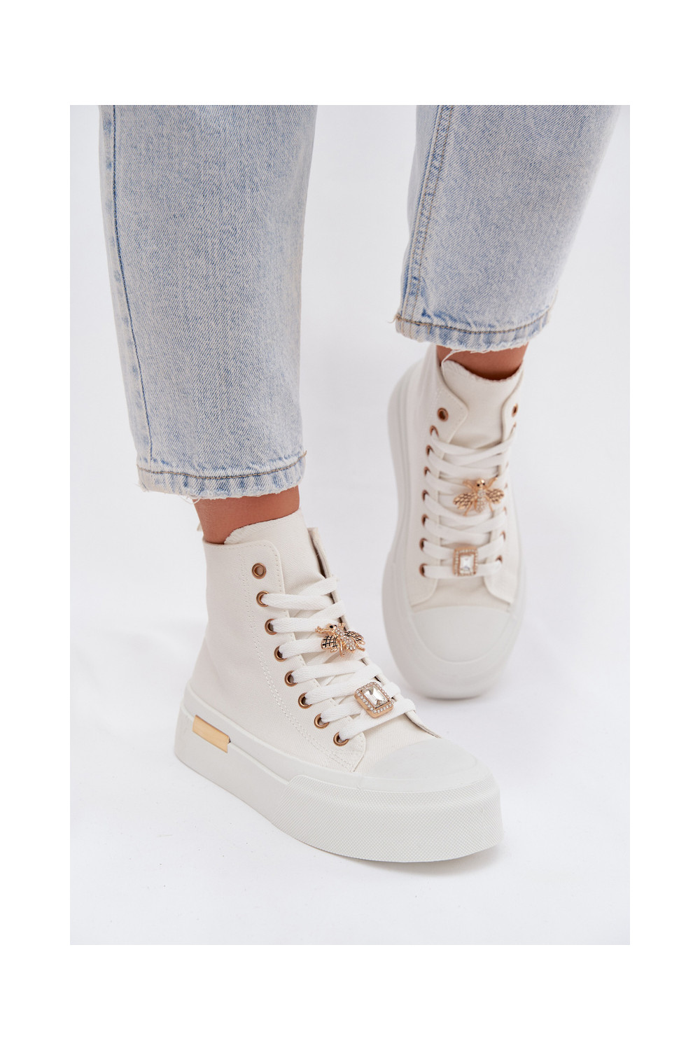 Balta krāsas brīvā laika apavi ar platformu un rotājumiem „Gracella"