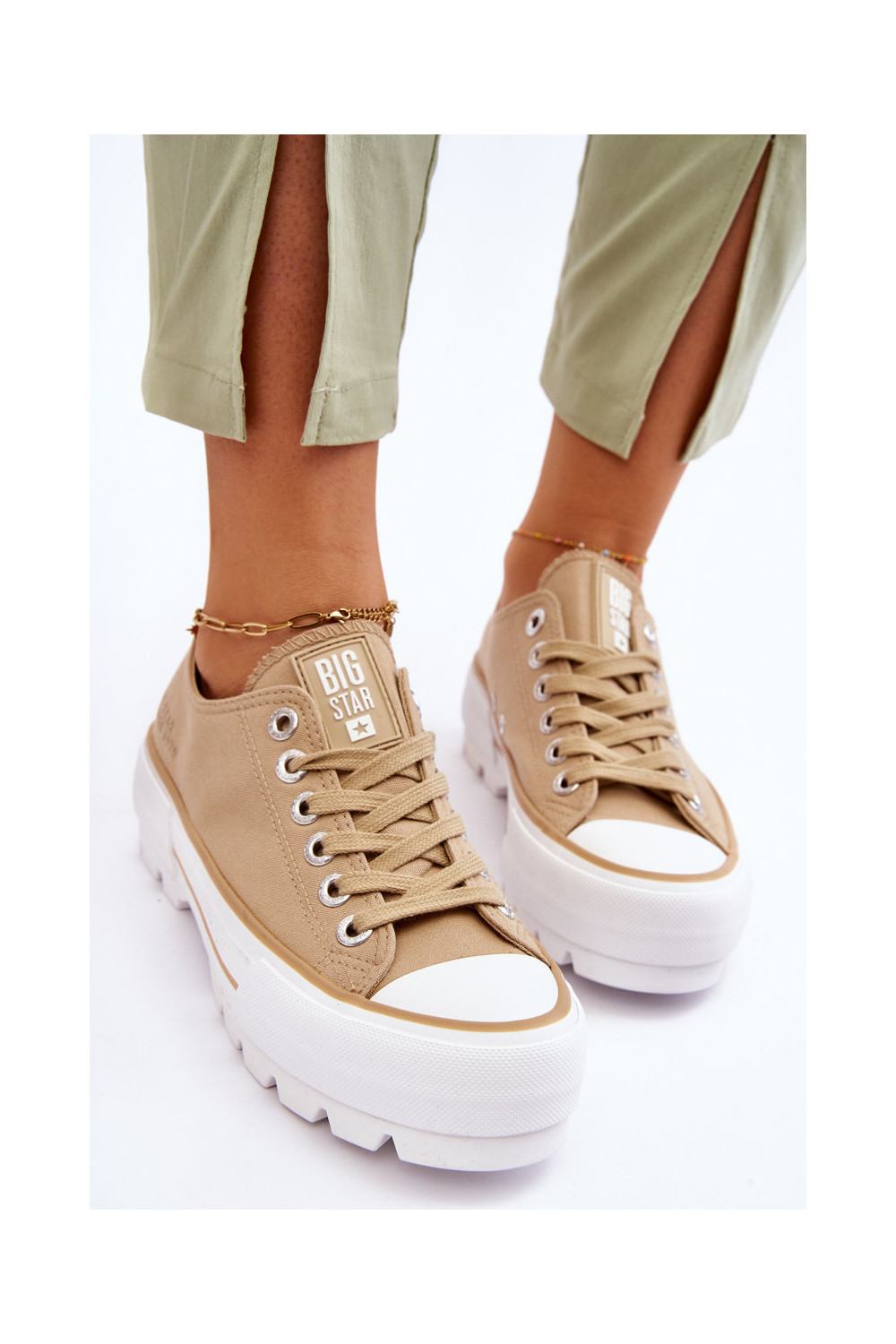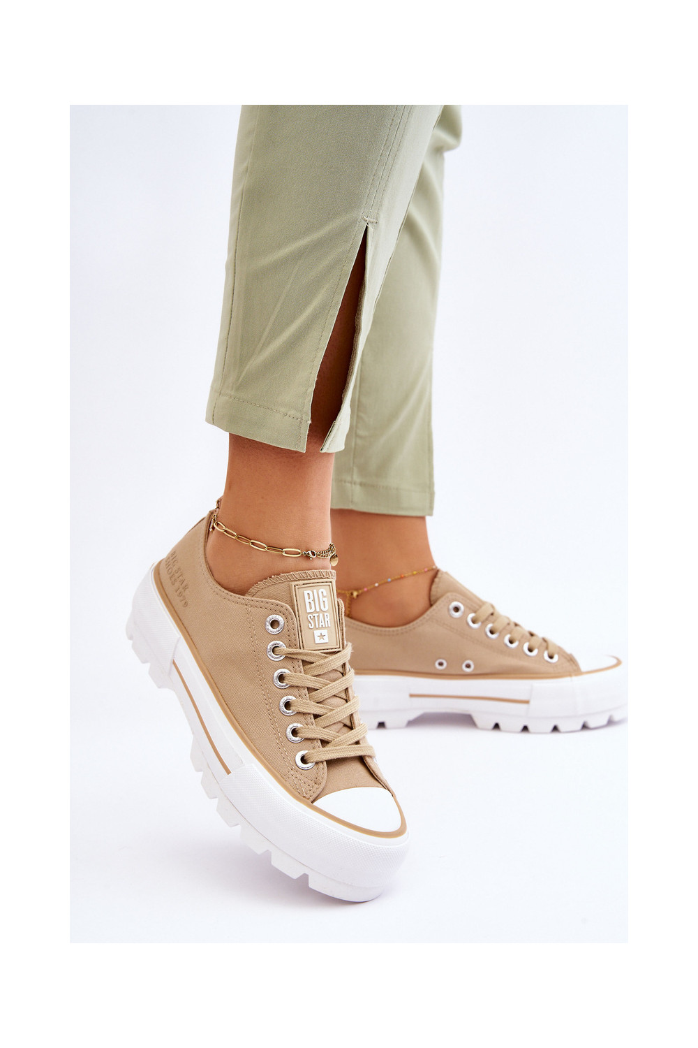 Auduma brīvā laika apavi ar platformu Big Star LL274154 smilšu krāsas