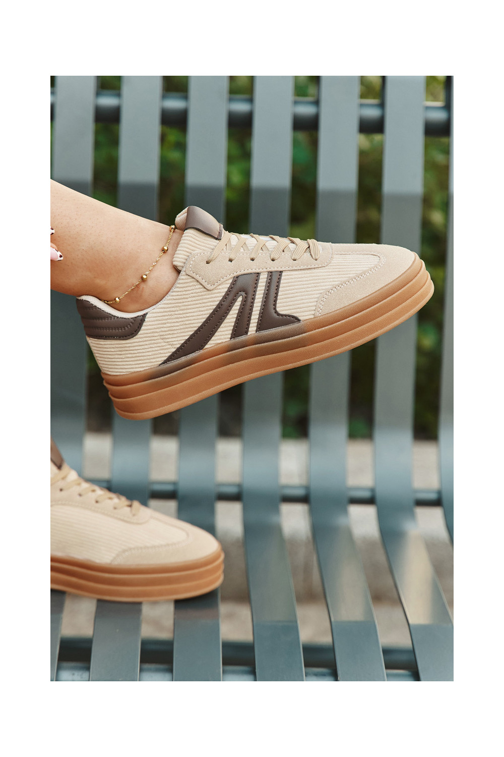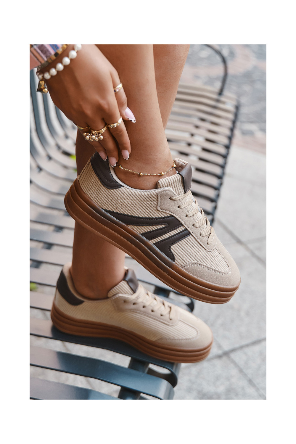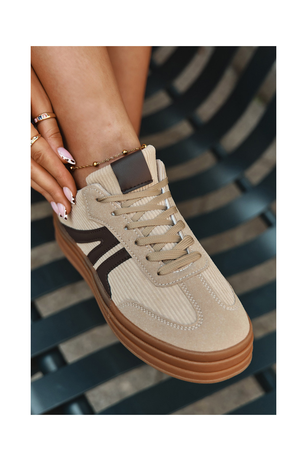 Mājsaimniecības samta sporta stila zābaki ar platformu, smilšu krāsā Corynelle