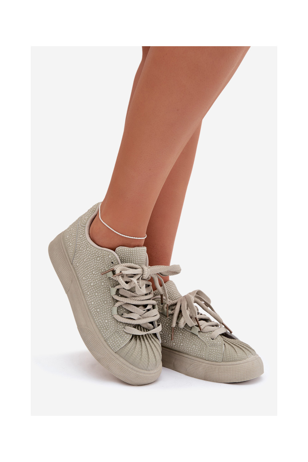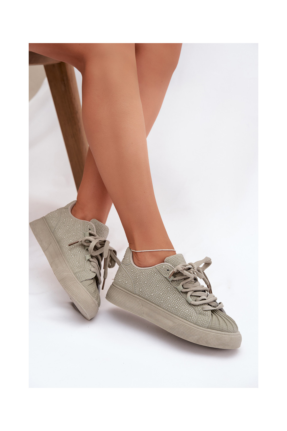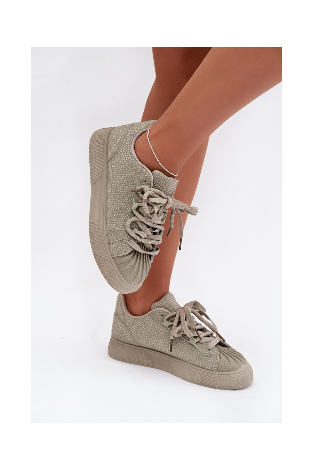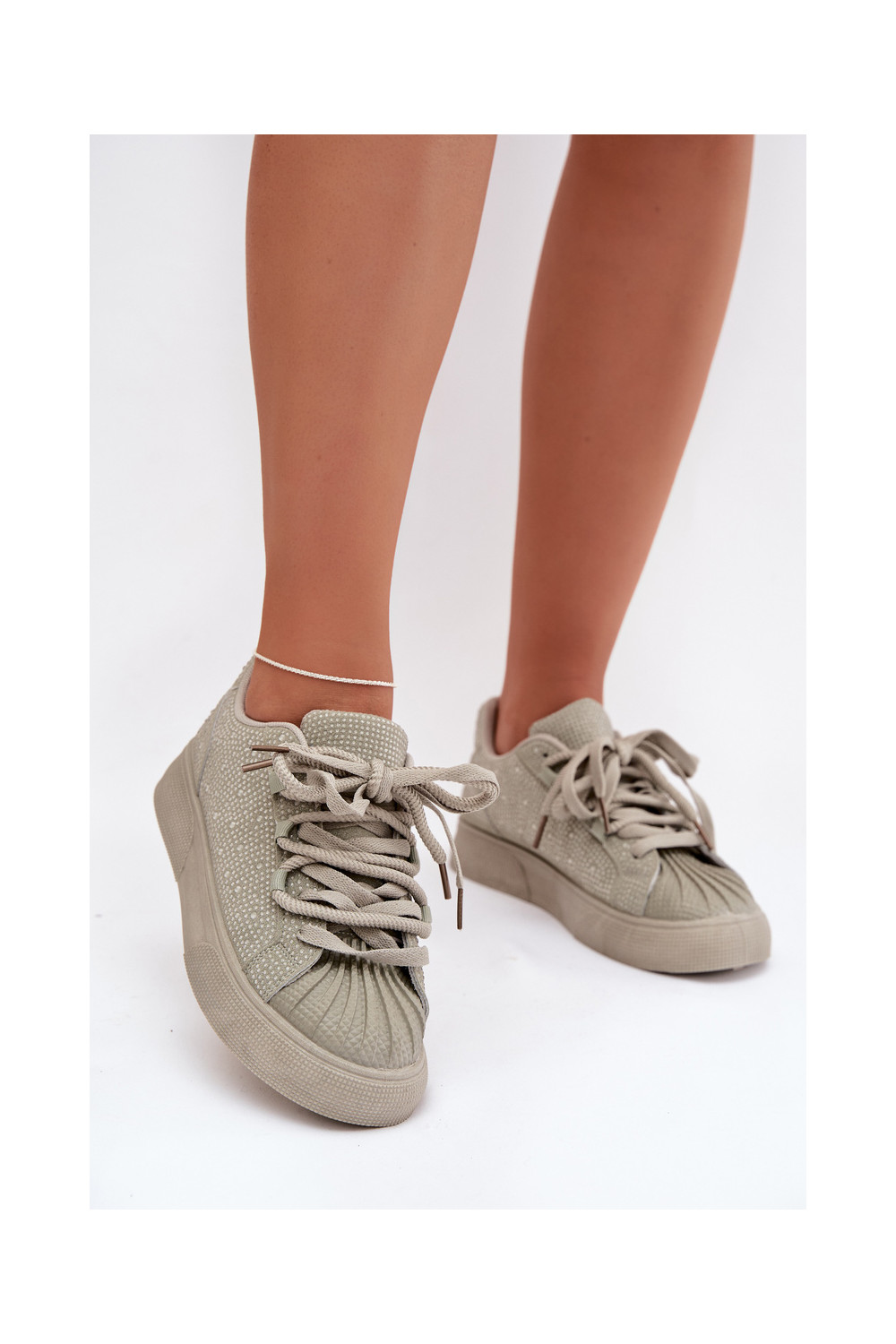 Dekorēti sporta modeļa sieviešu zābaki zaļā krāsā Calissea