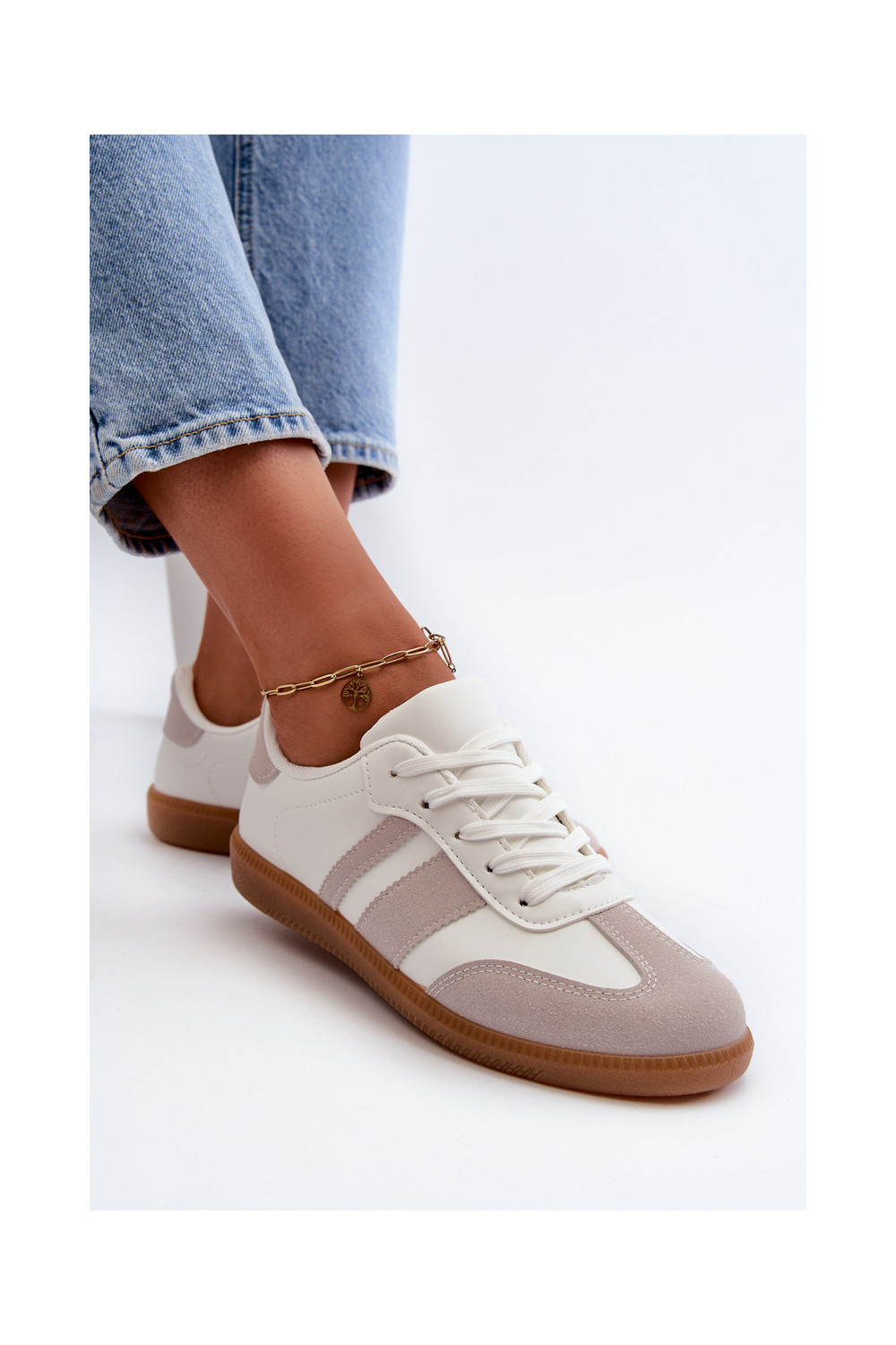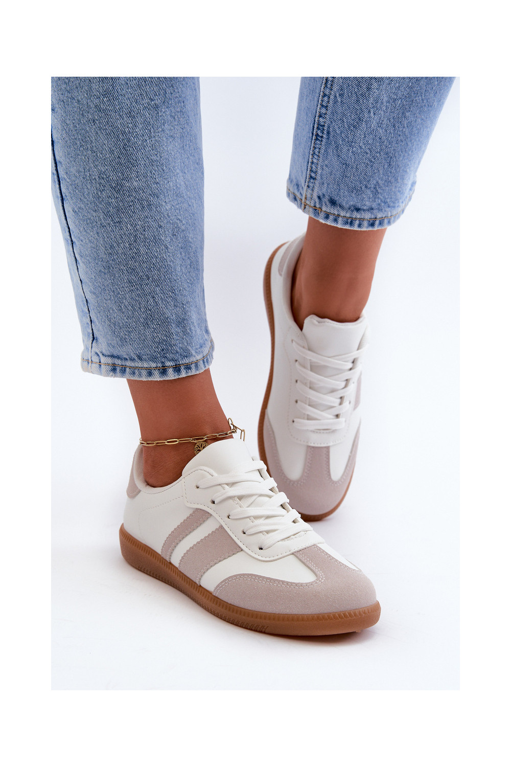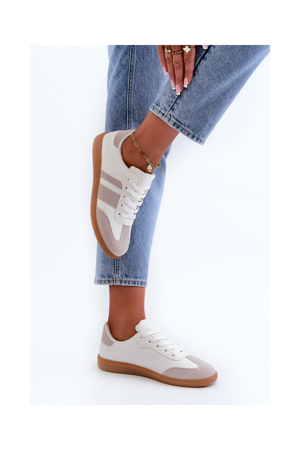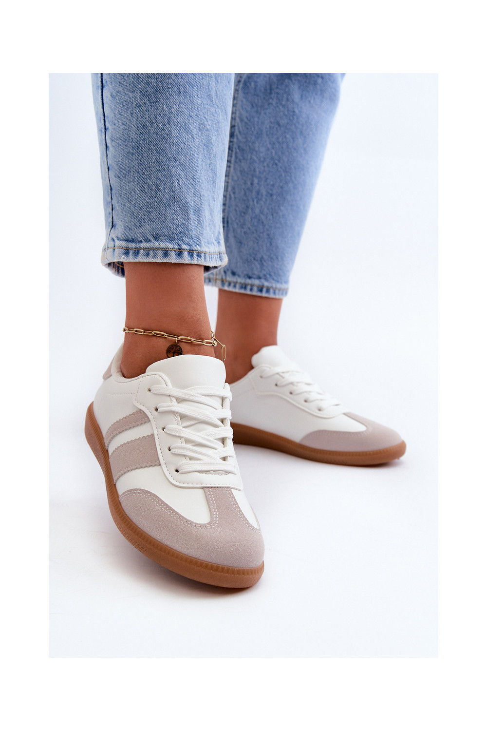 Sieviešu zemu papēžu mākslīgās ādas sporta stila apavi baltā pelēkā krāsā Relialia