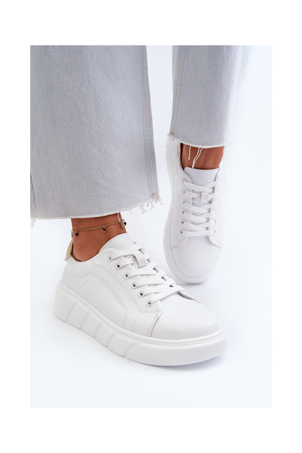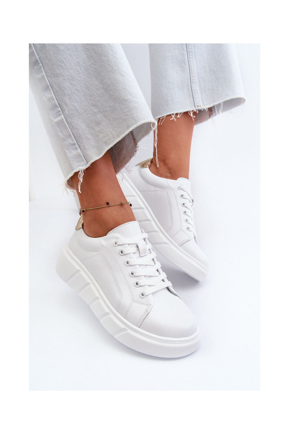 Ādas sporta stila sieviešu apavi ar platformu baltā krāsā Danida