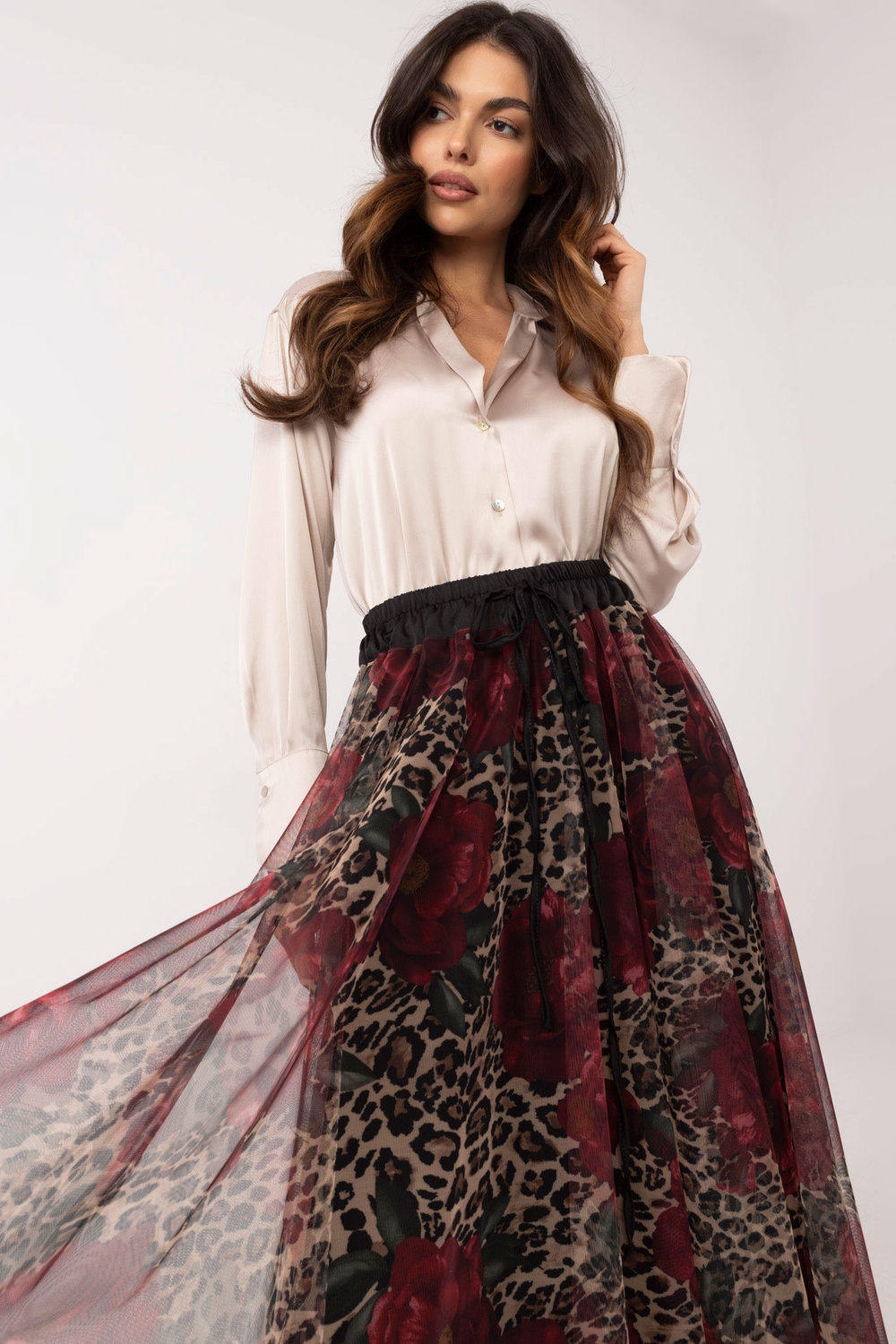 Modele valkā vienu izmēru. Modeļa izmēri: augums 173 cm, krūtis 85 cm, viduklis 62 cm, gurni 95 cm.