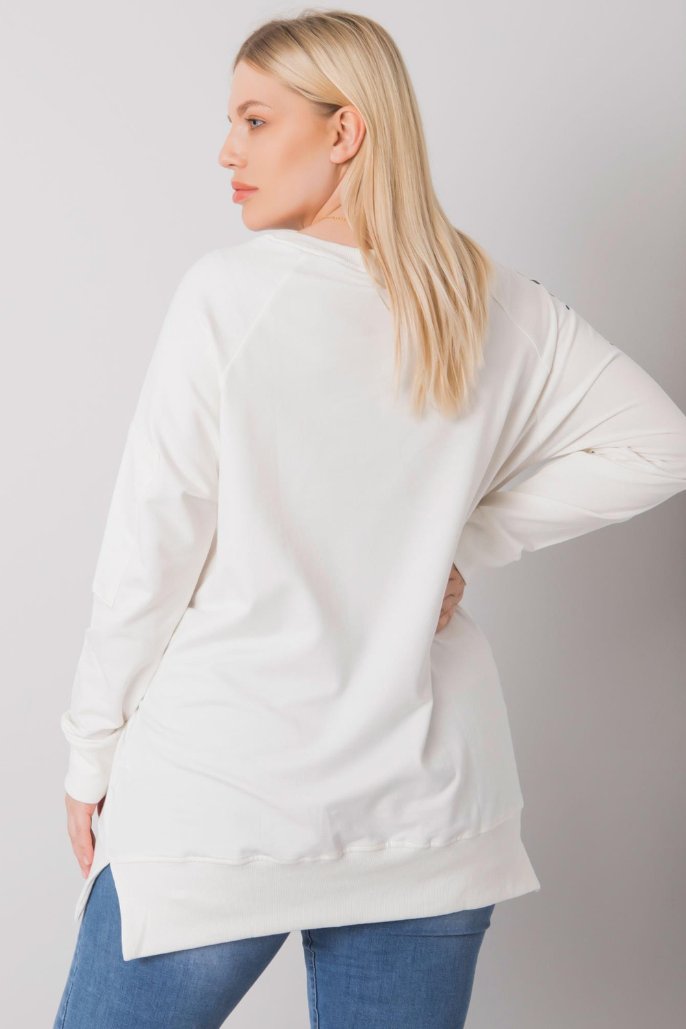 Ecrusweatshirt tunika lielizmēra Parma. Materiāla sastāvs: 90% kokvilna, 10% elastāns mazgāšanas metode: veļas mašīna 30°C. Modelis valkā viena izmēra izmēru. Modeļa izmēri: augums 172 cm, krūtis 102 cm, viduklis 77 cm, gurni 118 cm. Izmēri viena izmēra tu