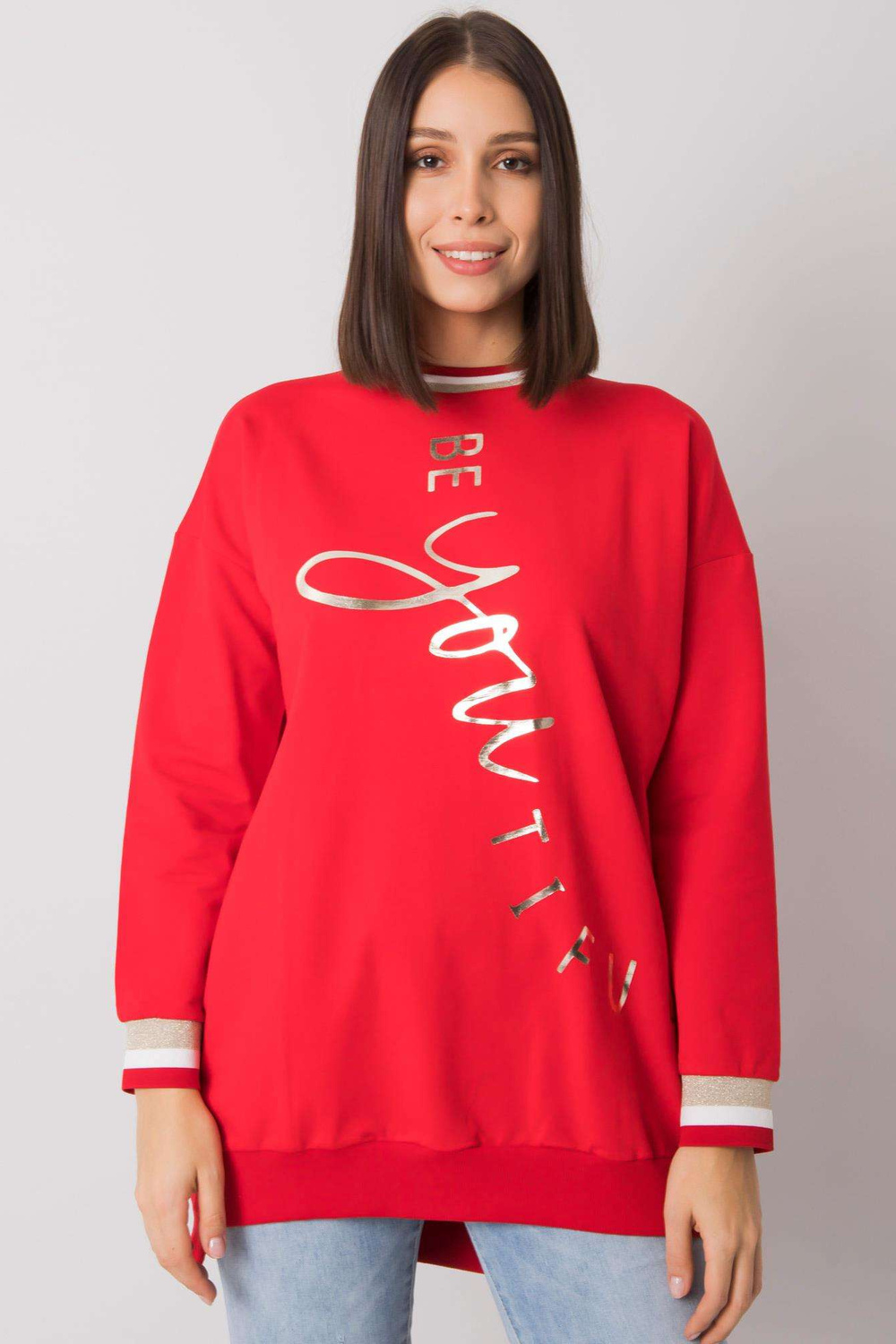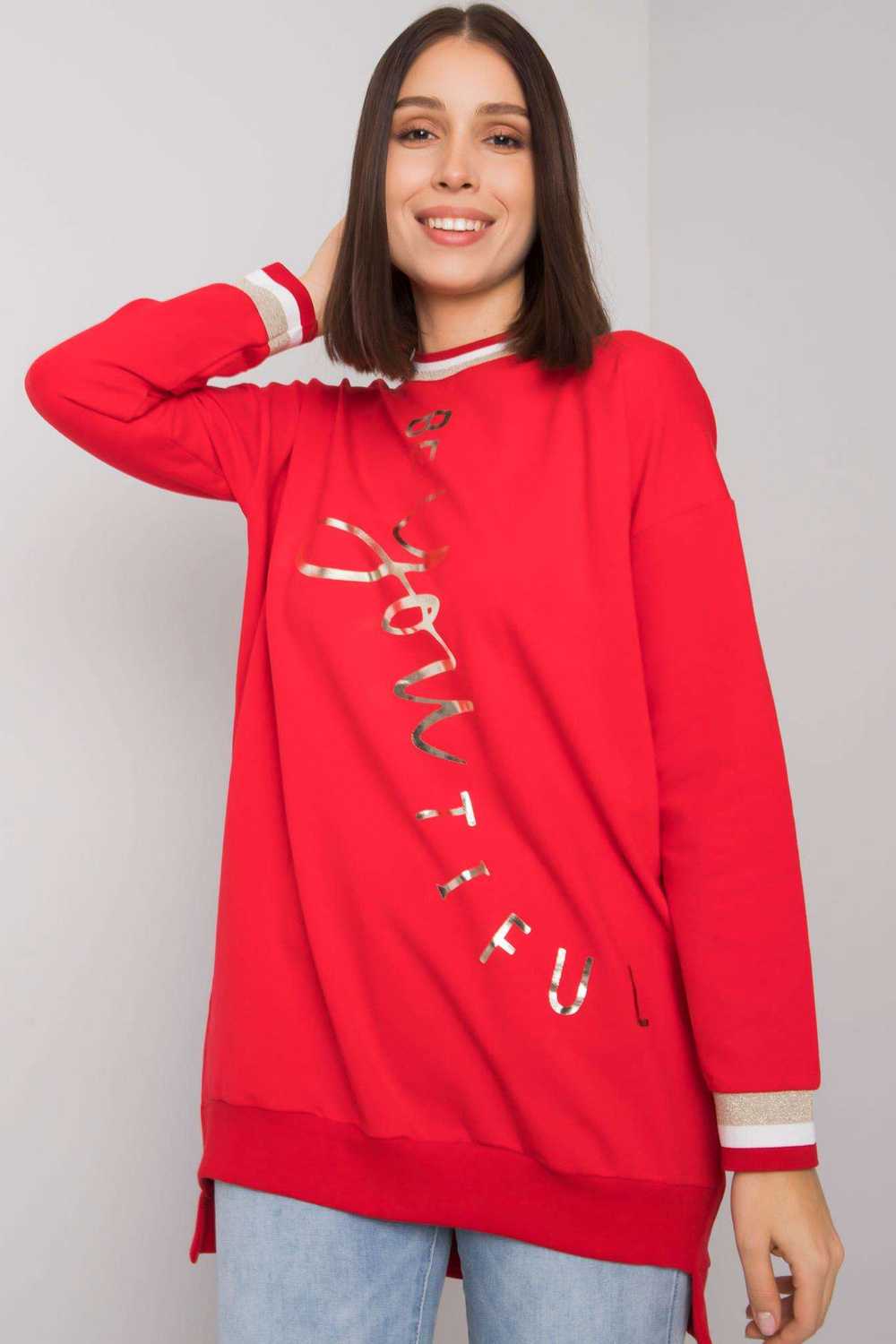 Sarkana kokvilnas tunika liela izmēra ar Jamellias uzrakstu