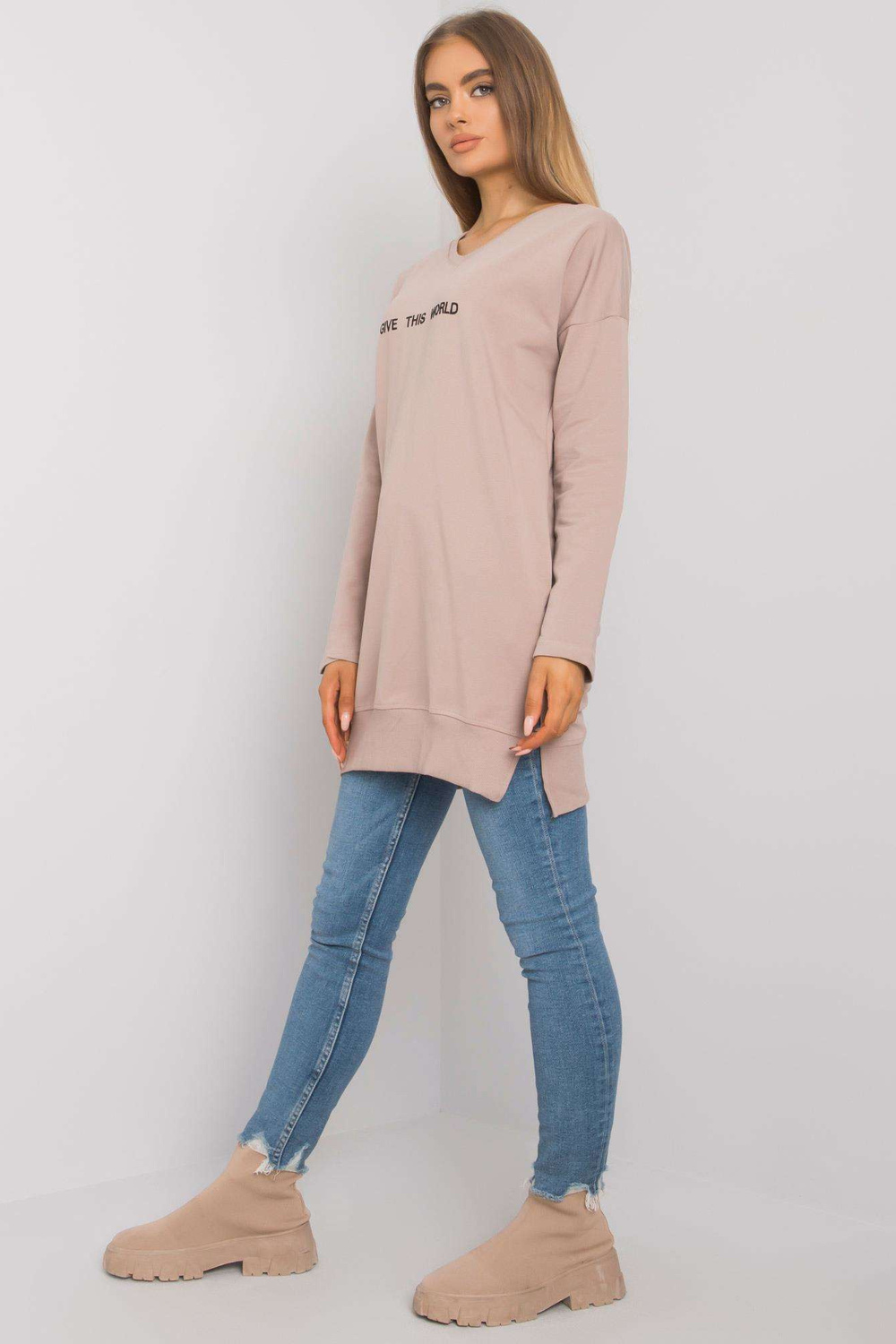 Tumši bēša tunika ar uzrakstu Halifax RUE PARIS.