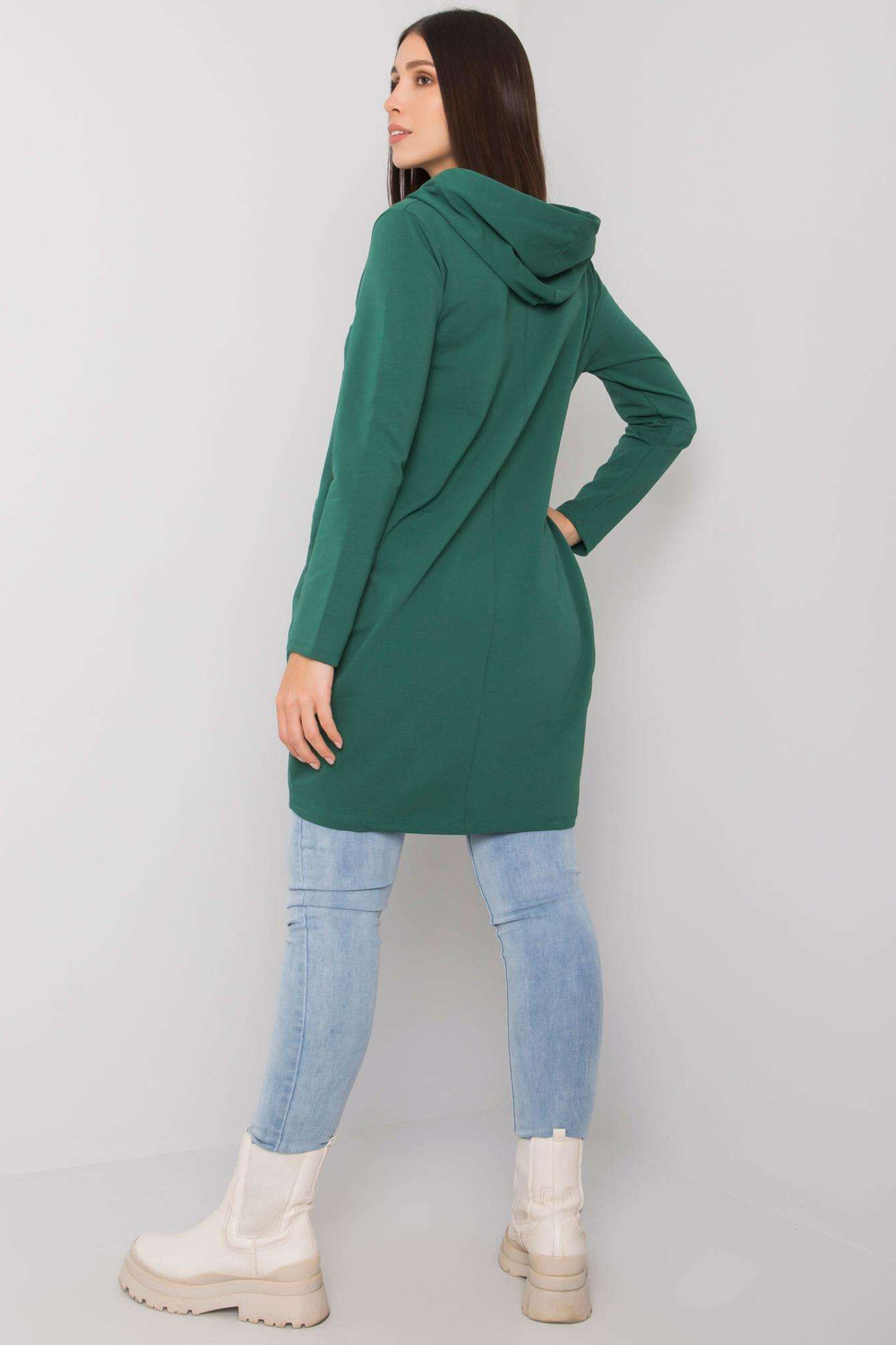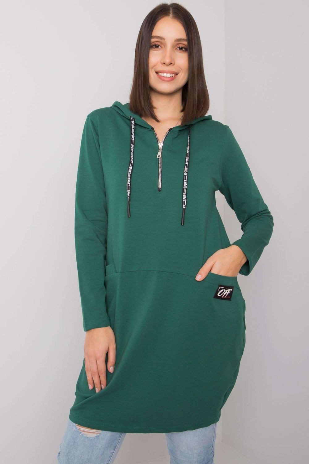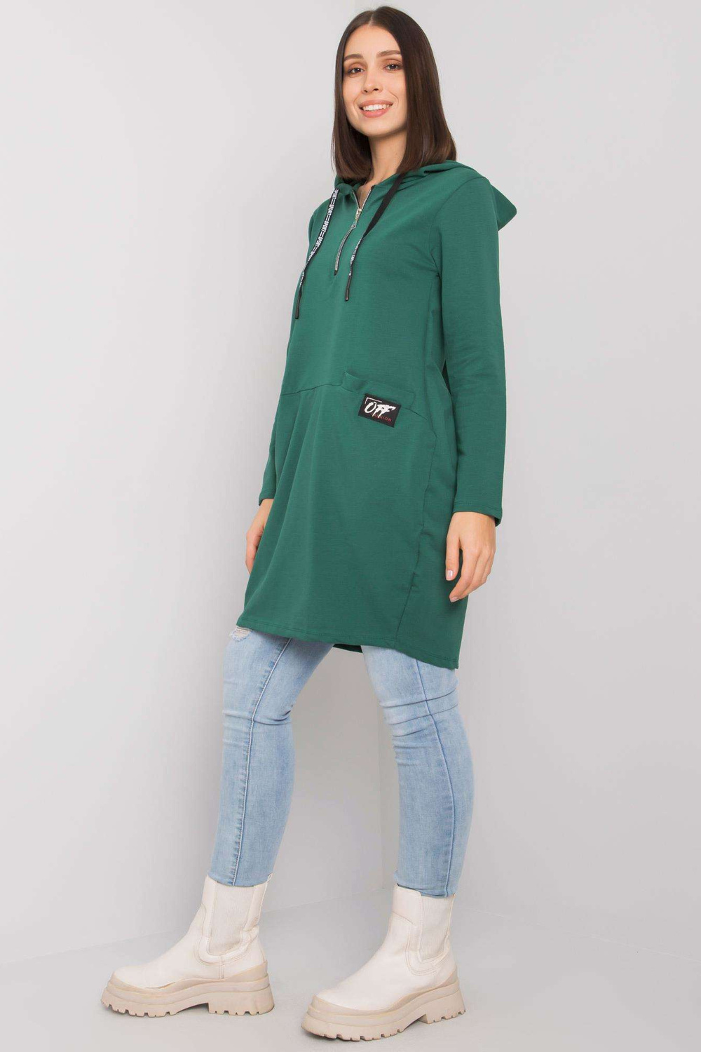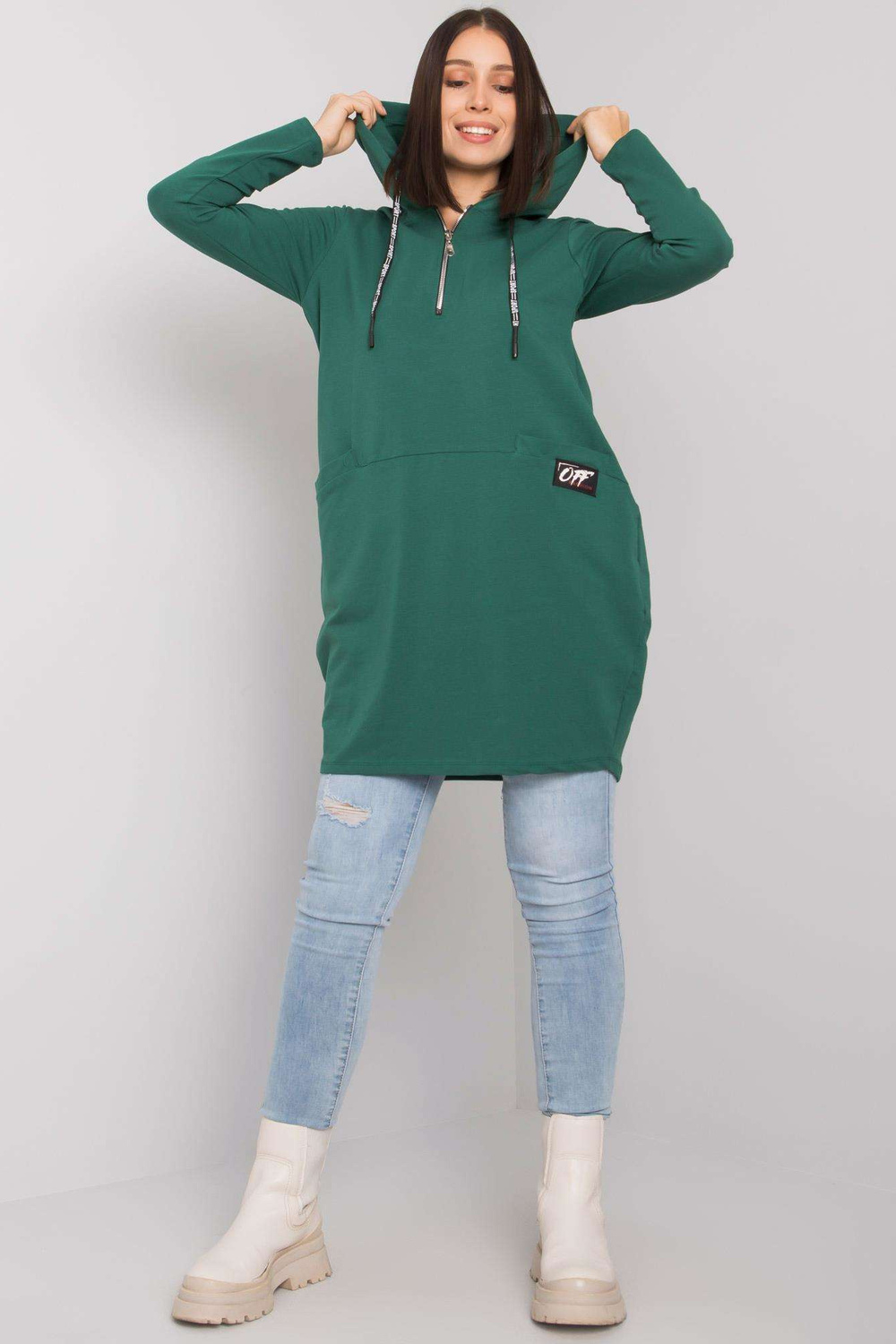 Tumši zaļa kokvilnas liela izmēra tunika ar Kierra kapuci.